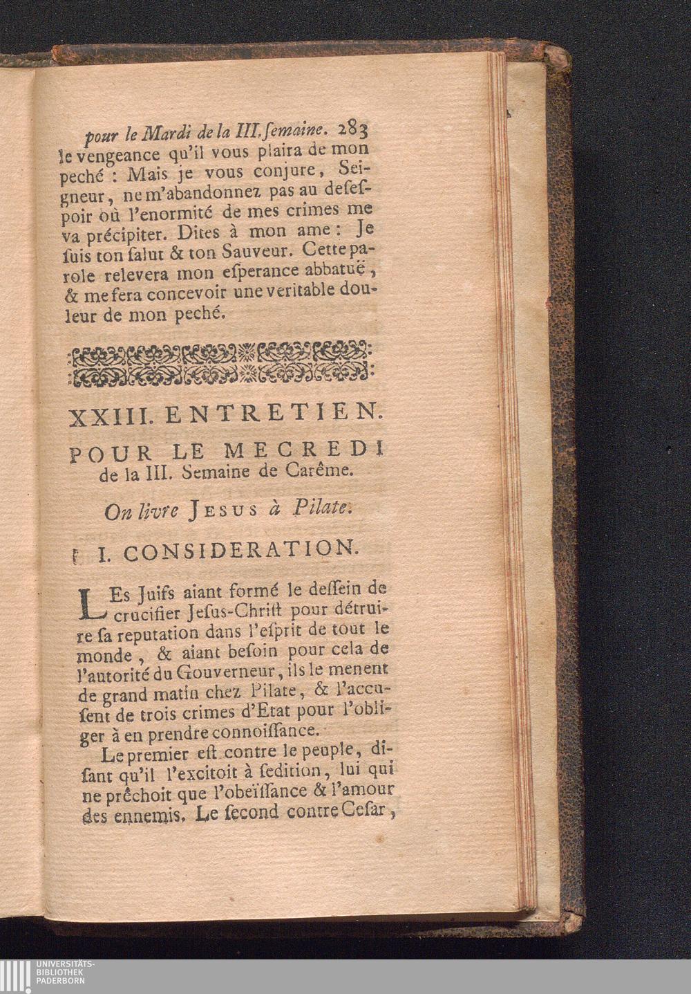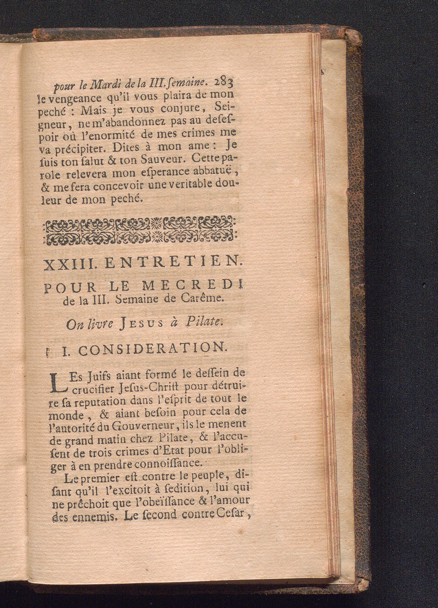 XXIII. Entretien. Pour le Mecredi de la troisiéme Semaine. On livre Jesus à Pila[...]