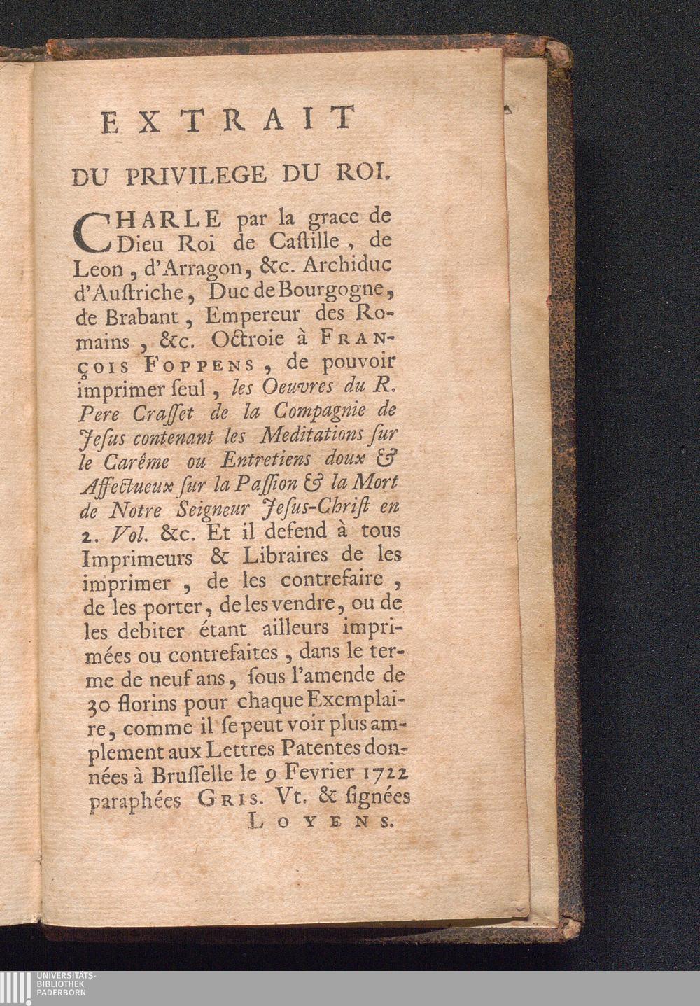 Extrait Du Privilege Du Roi.