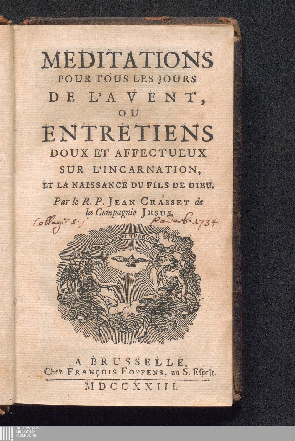 Méditations Pour Tous Les Jours De L'Avent, Ou Entretiens Doux Et Affectueux Sur L'Incarnation Et La Naissance Du Fils De Dieu / par le R. P. Jean Crasset de la Compagnie Jesus