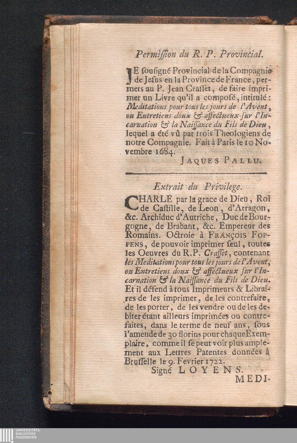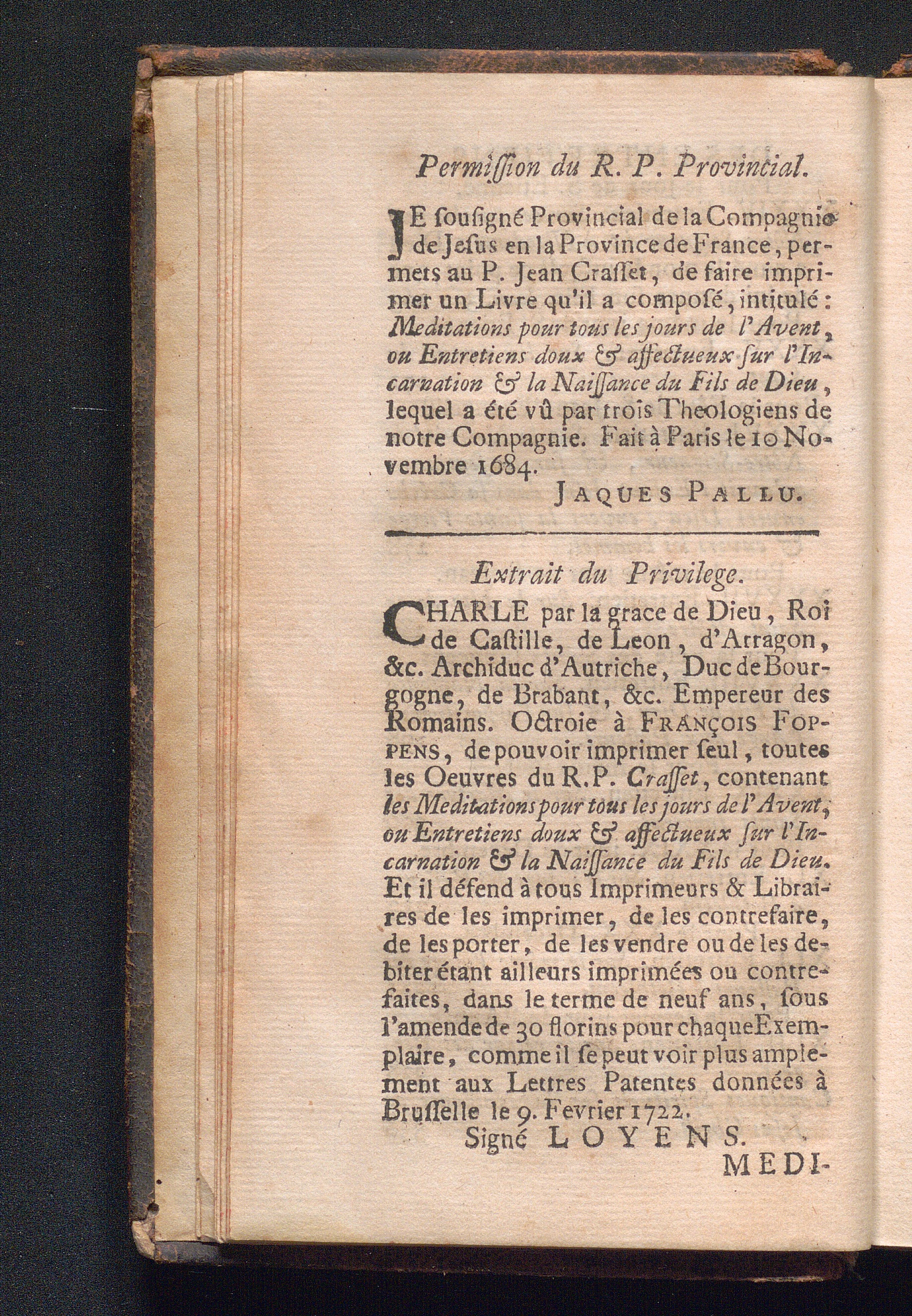 Méditations Pour Tous Les Jours De L'Avent, Ou Entretiens Doux Et Affectueux Sur L'Incarnation Et La Naissance Du Fils De Dieu / par le R. P. Jean Crasset de la Compagnie Jesus