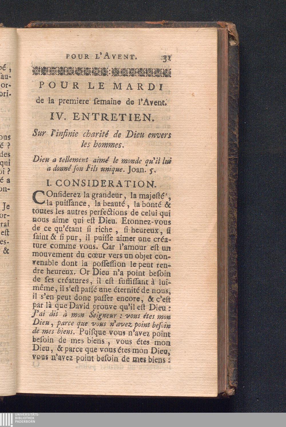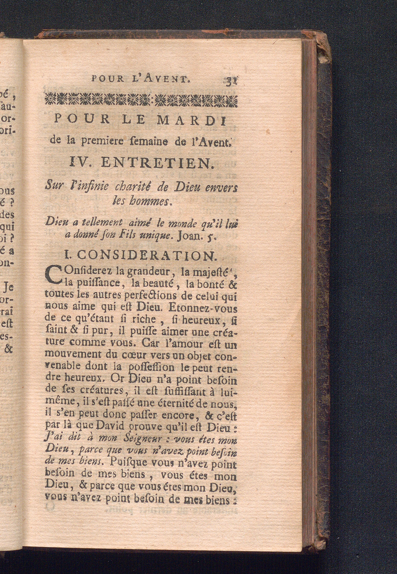 Pour le Mardi de la premiere Semaine de l'Avent. IV. Entretien. Sur l'infinie charité[...]