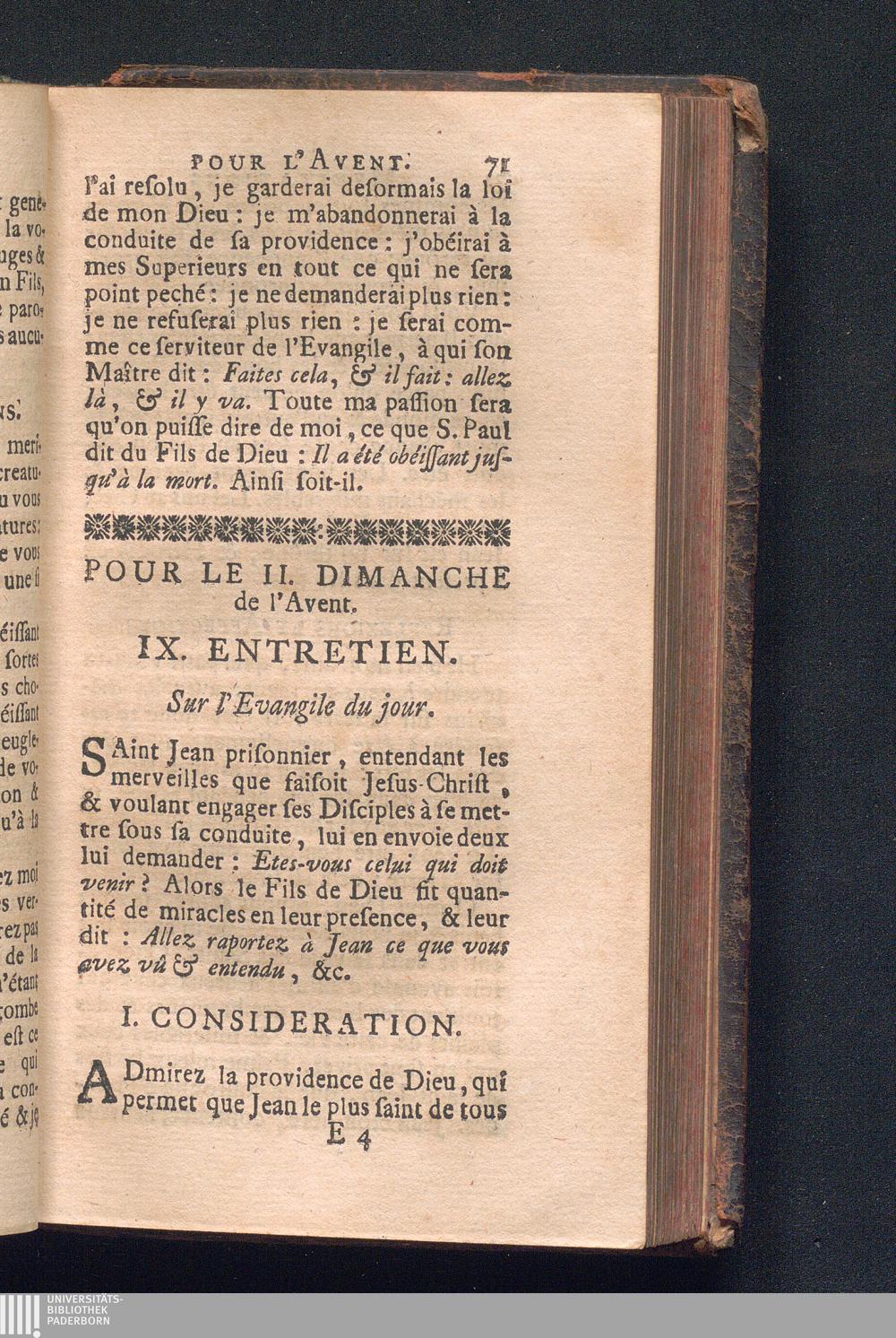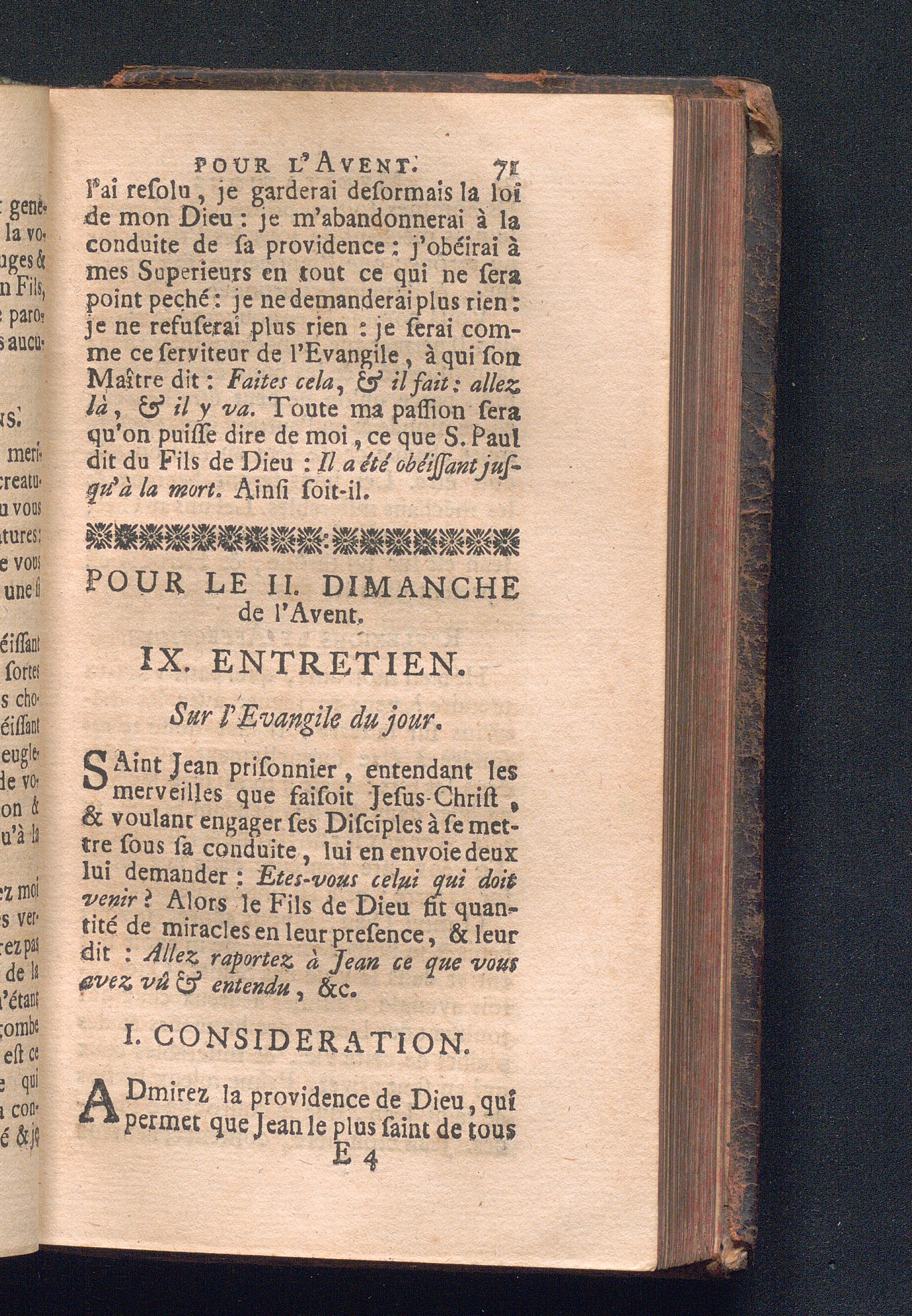 Pour le II. Dimanche de l'Avent. IX. Entretien. Sur l'Evangile du jour.