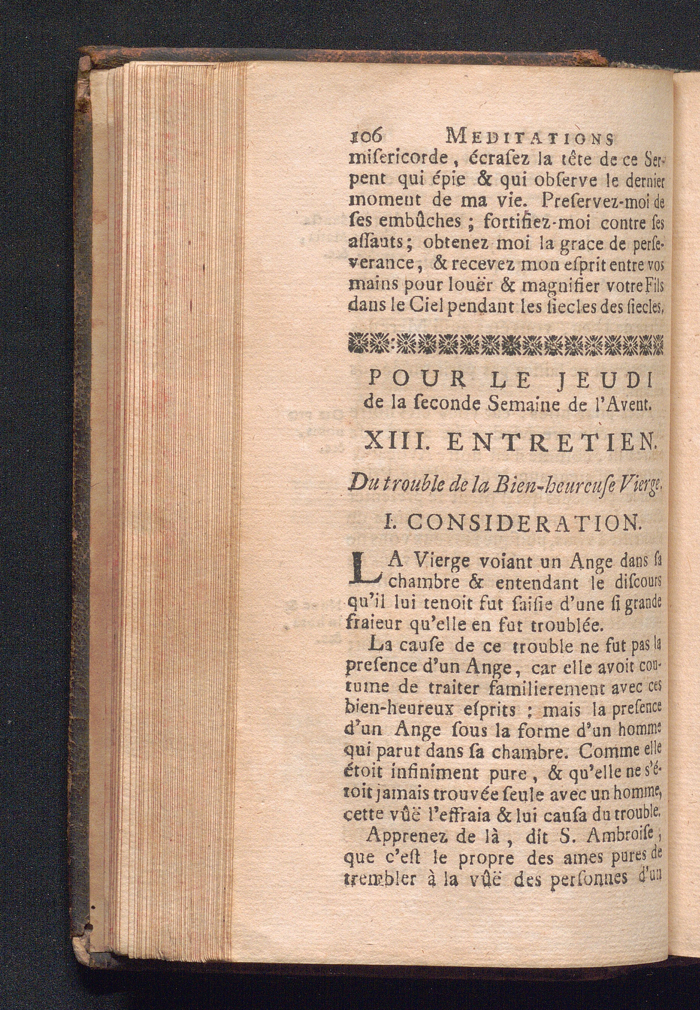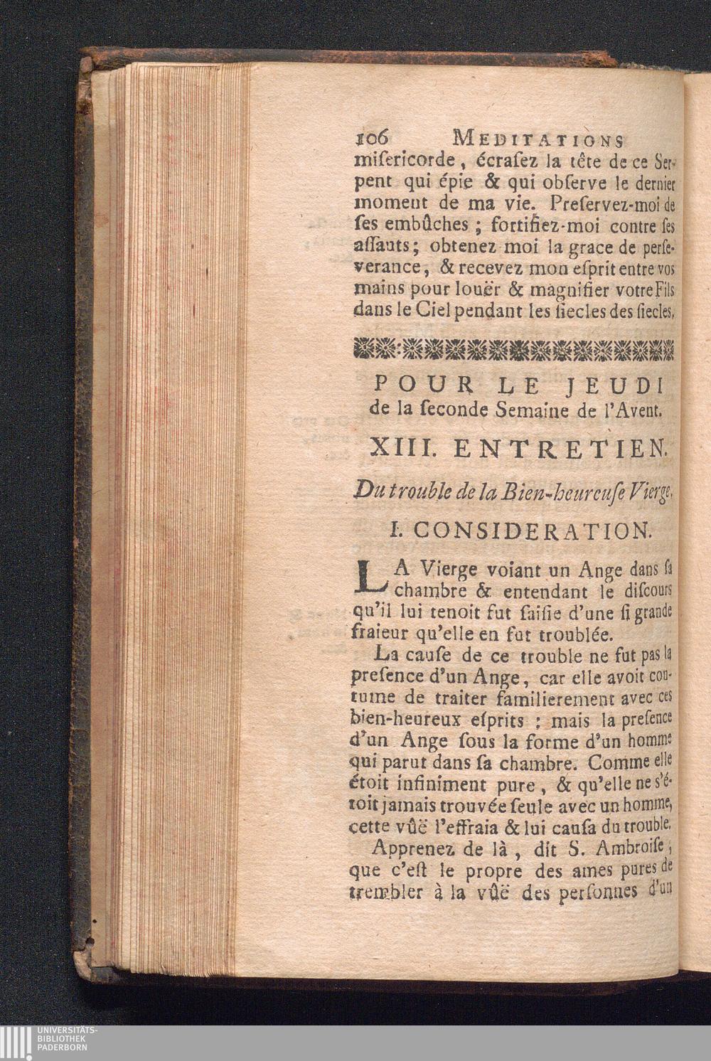 Pour le Jeudi de la II. Semaine de l'Avent. XIII. Entretien. Du trouble de la Bien-heureuse[...]