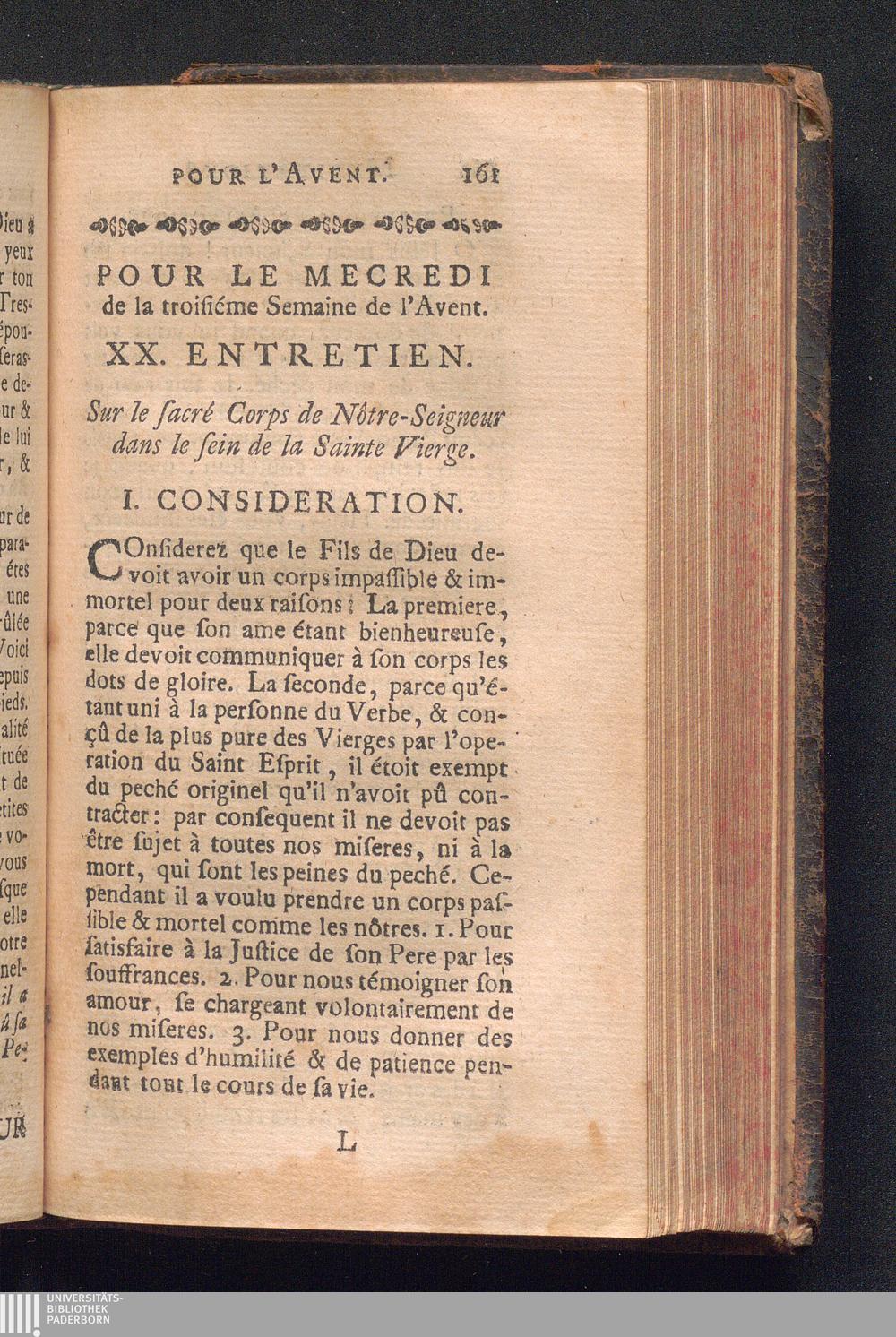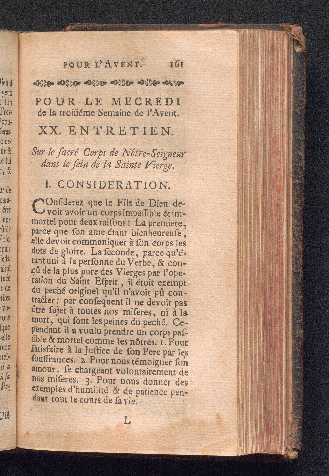 Pour le Mecredi de la III. Semaine de l'Avent. XX. Entretien. Sur le sacré Corps[...]