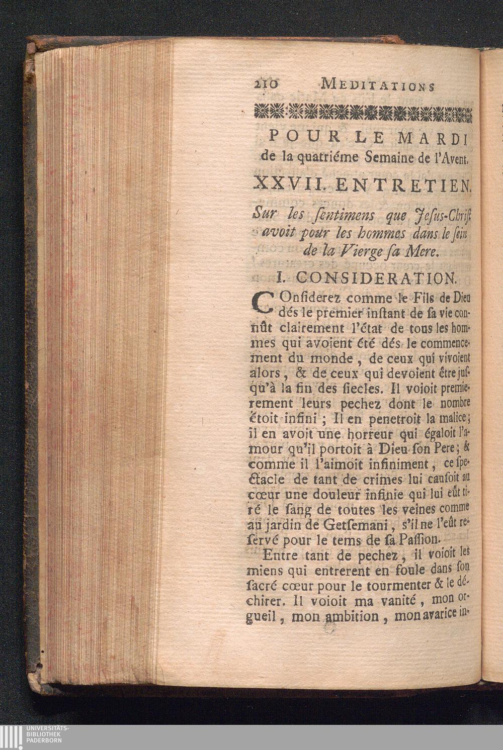 Pour le Mardi de la IV. Semaine de l'Avent. XXVII. Entretien. Sur les sentimens que[...]