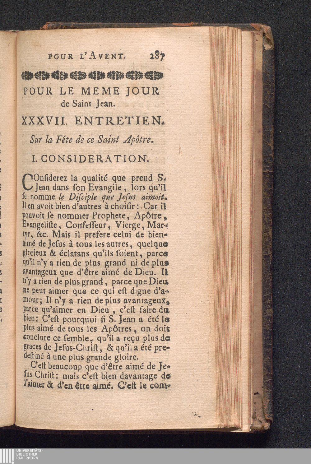 Pour le même jour de S. Jean. XXXVII. Entretien. Sur la Fête de ce Saint Apôtre.