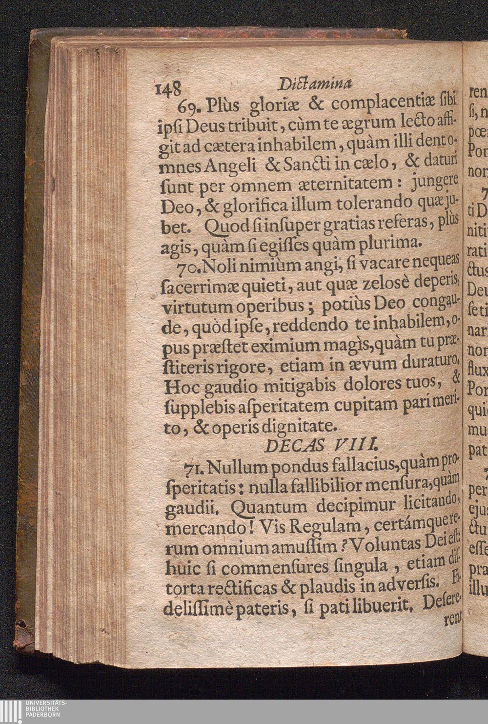 Dictamina Seu Scita Variæ Doctrinæ, Politicæ, Moralis, Stoicæ, Christianæ, & Spiritualis : Ex operibus R.P. Joannis Eusebii Nierembergii, Soc. Jesu, Collecta, & ab ipso Authore recognita ; Ex Hispanico in Latinum translata. Sodalibus Marianis in strenam data