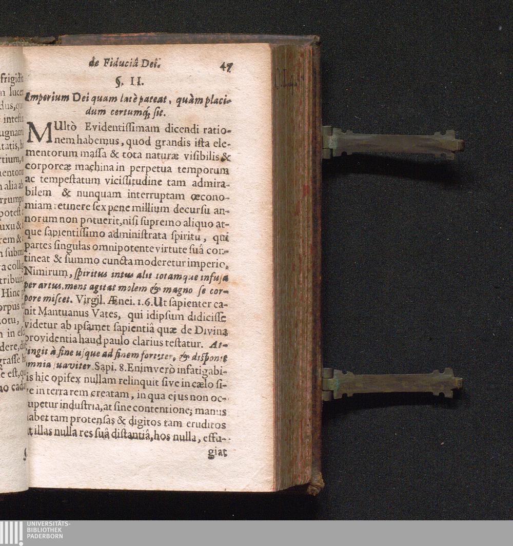Tractatvs De Fiducia In Devm Plurimas Et Utilissimas pro vitâ spirituali instructiones Continens, Præcipue Ad Obtinendam magnam animæ quietem, & afflictiones quascunque ingenti cum solatio & fructu perferendas : In Libros IV Divisus / à R.P. Nicolao du Sault Soc. Jesu quondam Gallicè scriptus Latinè redditus à R.P. Francisco Rovæo ejusdem Societatis Sacerdote