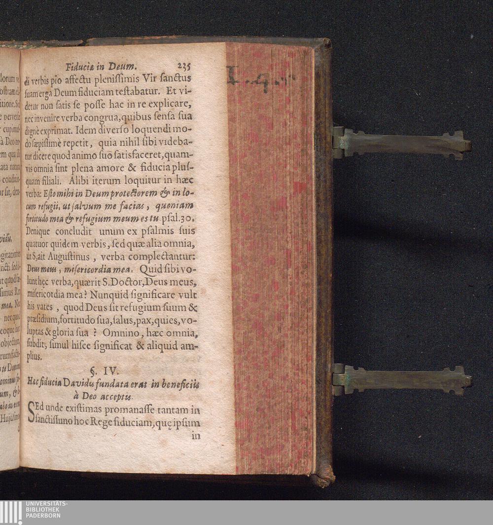 Tractatvs De Fiducia In Devm Plurimas Et Utilissimas pro vitâ spirituali instructiones Continens, Præcipue Ad Obtinendam magnam animæ quietem, & afflictiones quascunque ingenti cum solatio & fructu perferendas : In Libros IV Divisus / à R.P. Nicolao du Sault Soc. Jesu quondam Gallicè scriptus Latinè redditus à R.P. Francisco Rovæo ejusdem Societatis Sacerdote