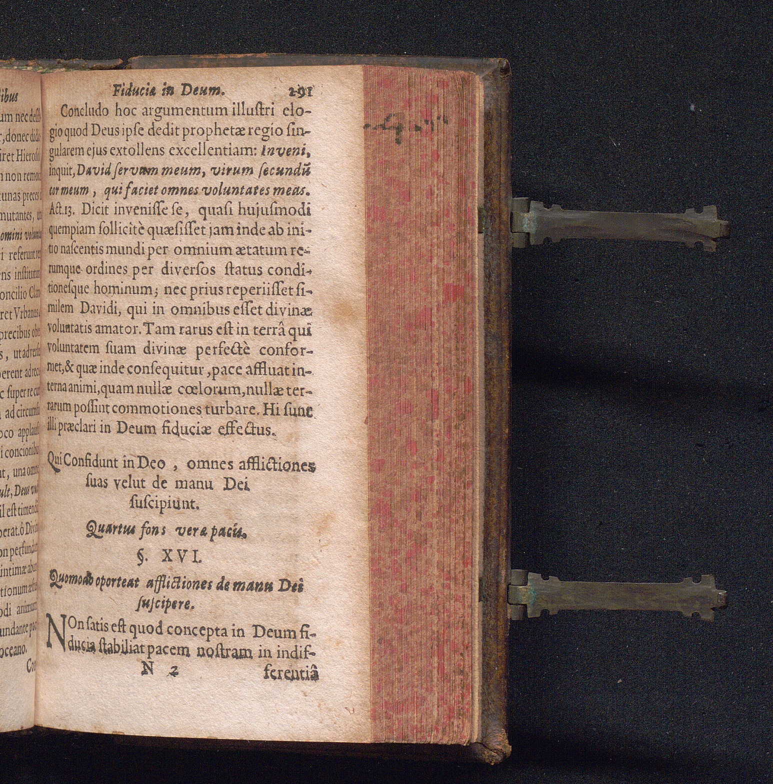 Tractatvs De Fiducia In Devm Plurimas Et Utilissimas pro vitâ spirituali instructiones Continens, Præcipue Ad Obtinendam magnam animæ quietem, & afflictiones quascunque ingenti cum solatio & fructu perferendas : In Libros IV Divisus / à R.P. Nicolao du Sault Soc. Jesu quondam Gallicè scriptus Latinè redditus à R.P. Francisco Rovæo ejusdem Societatis Sacerdote