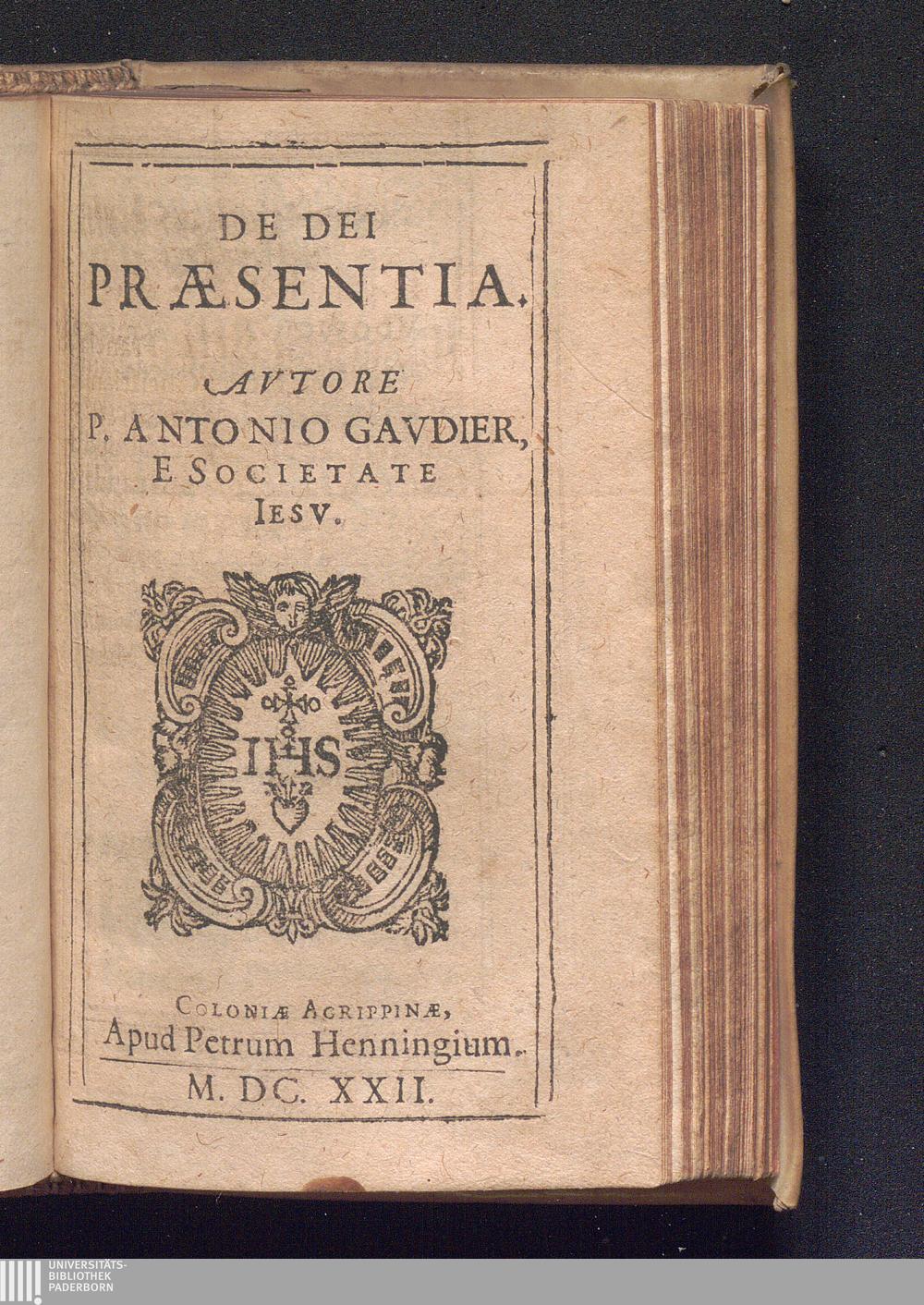 De Dei Præsentia / Avtore Antonio Gavdier, E Societate Iesv