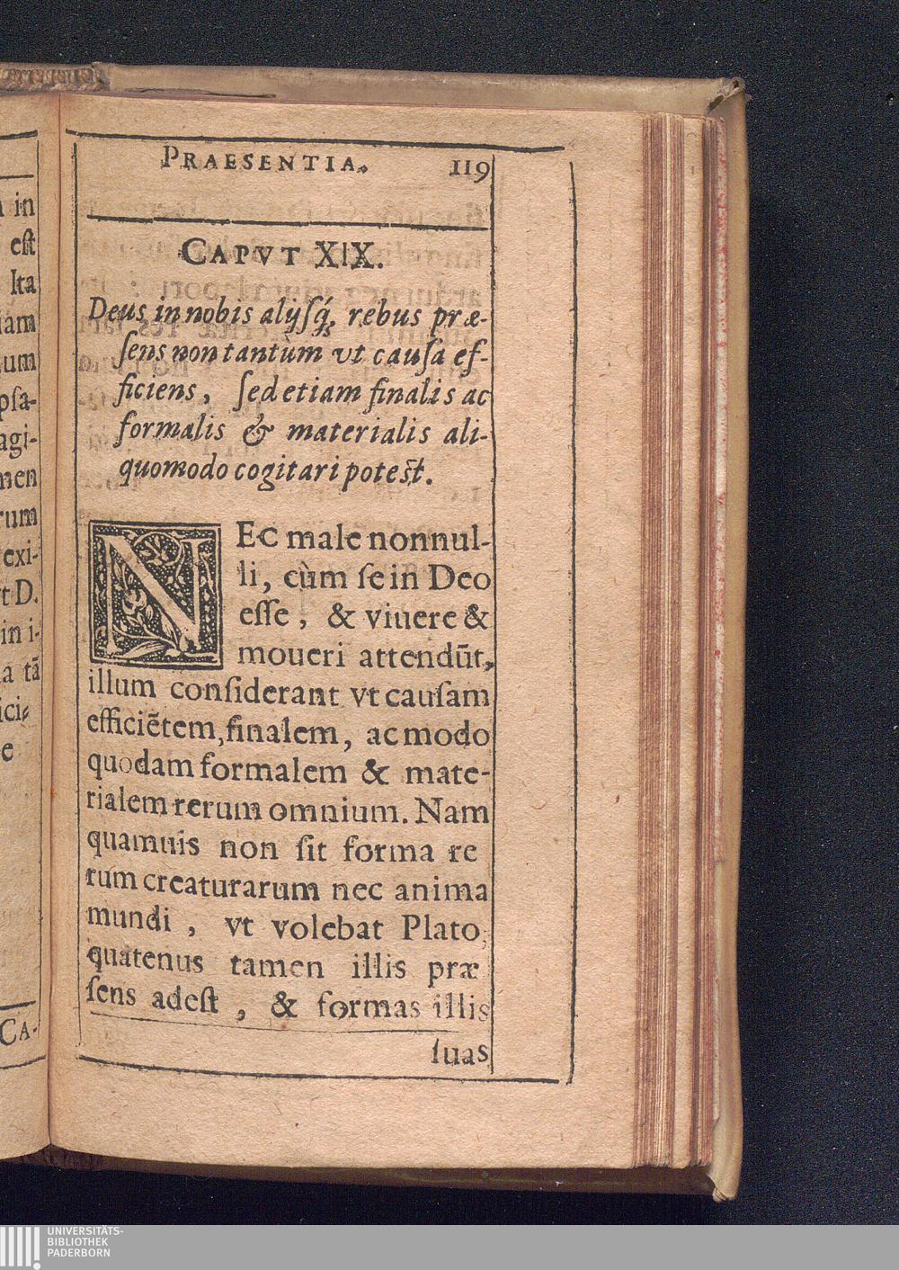 Cap. XIX. Deus in nobis alijsque rebus præsens non tantùm vt causa efficiens, sed[...]