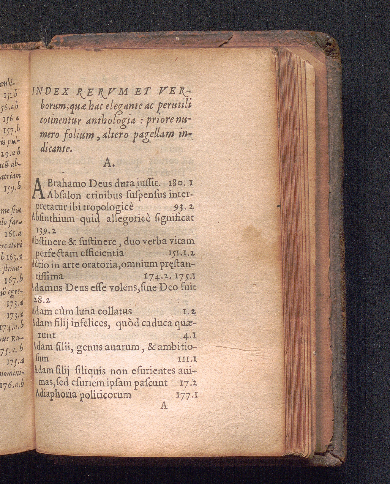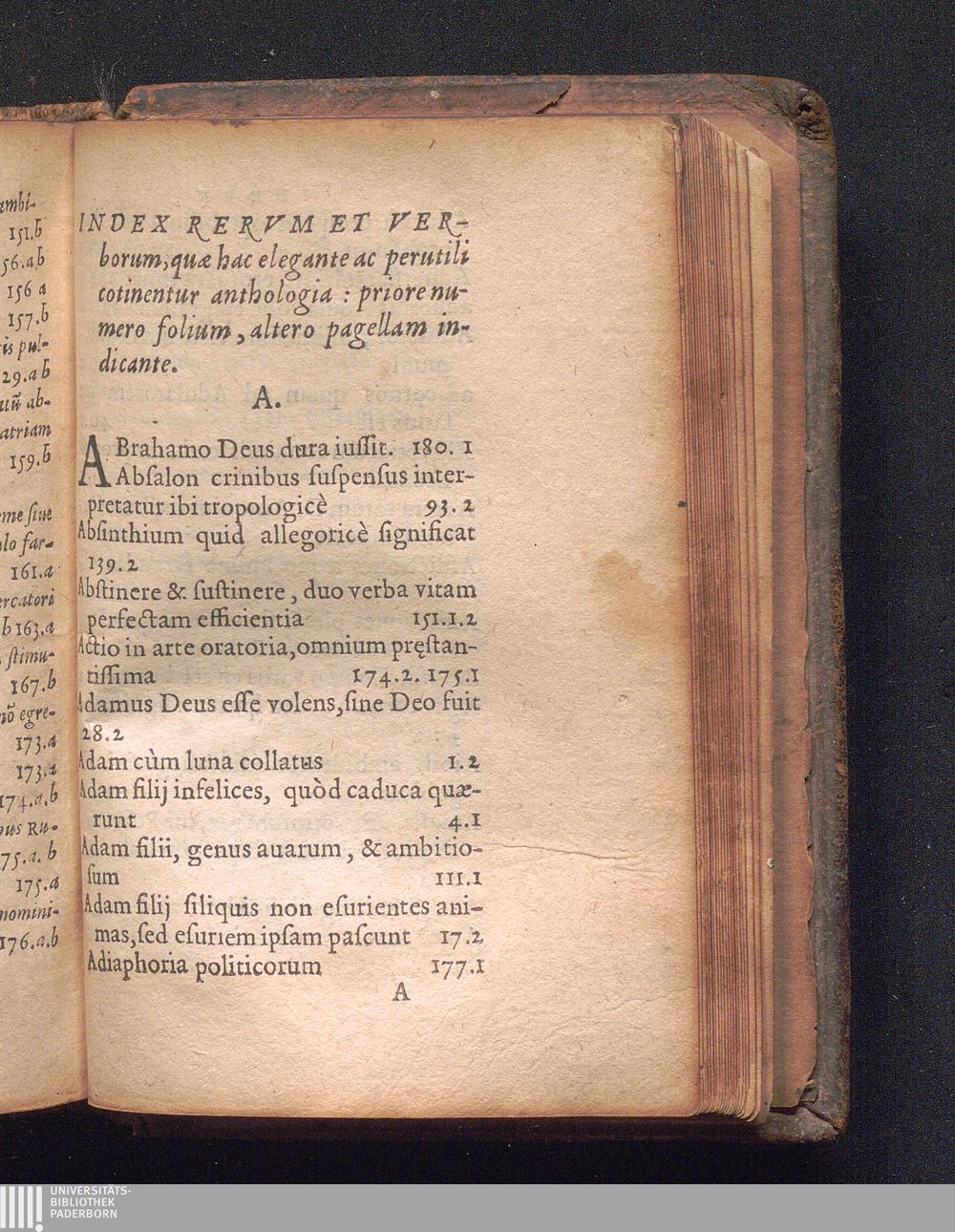 Index Rervm Et Verborum, quæ hac elegante ac perutili co[n]tinentur anthologia: priore[...]