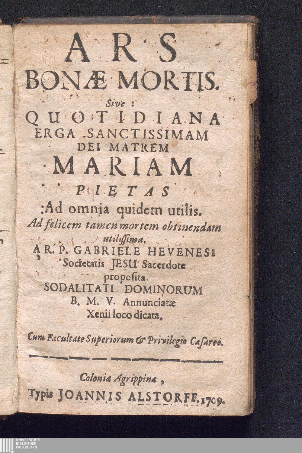 Ars Bonæ Mortis. Sive: Quotidiana Erga Sanctissimam Dei Matrem Mariam Pietas