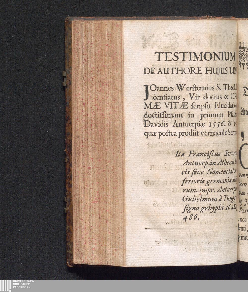 Leben und Todt Auf dem Schmalen oder Breiten Weg in dieser Zeit/ Vor Eingang in die Ewigkeit Einem jeden zu erwehlen vorgestellet/ Nach Anleitung des ersten Psalmen Davids / Vor allbereit anderhalb hundert Jahren in Latein- hernach in Brabandischer Sprach Von einem Gottseligen Mann beschrieben. Anjetzo zu Allgemeinem Besten in Hoch-Teutsch treulich übersetzt Von Industrio Perpetuoque Studioso Veritatis Antiquæ