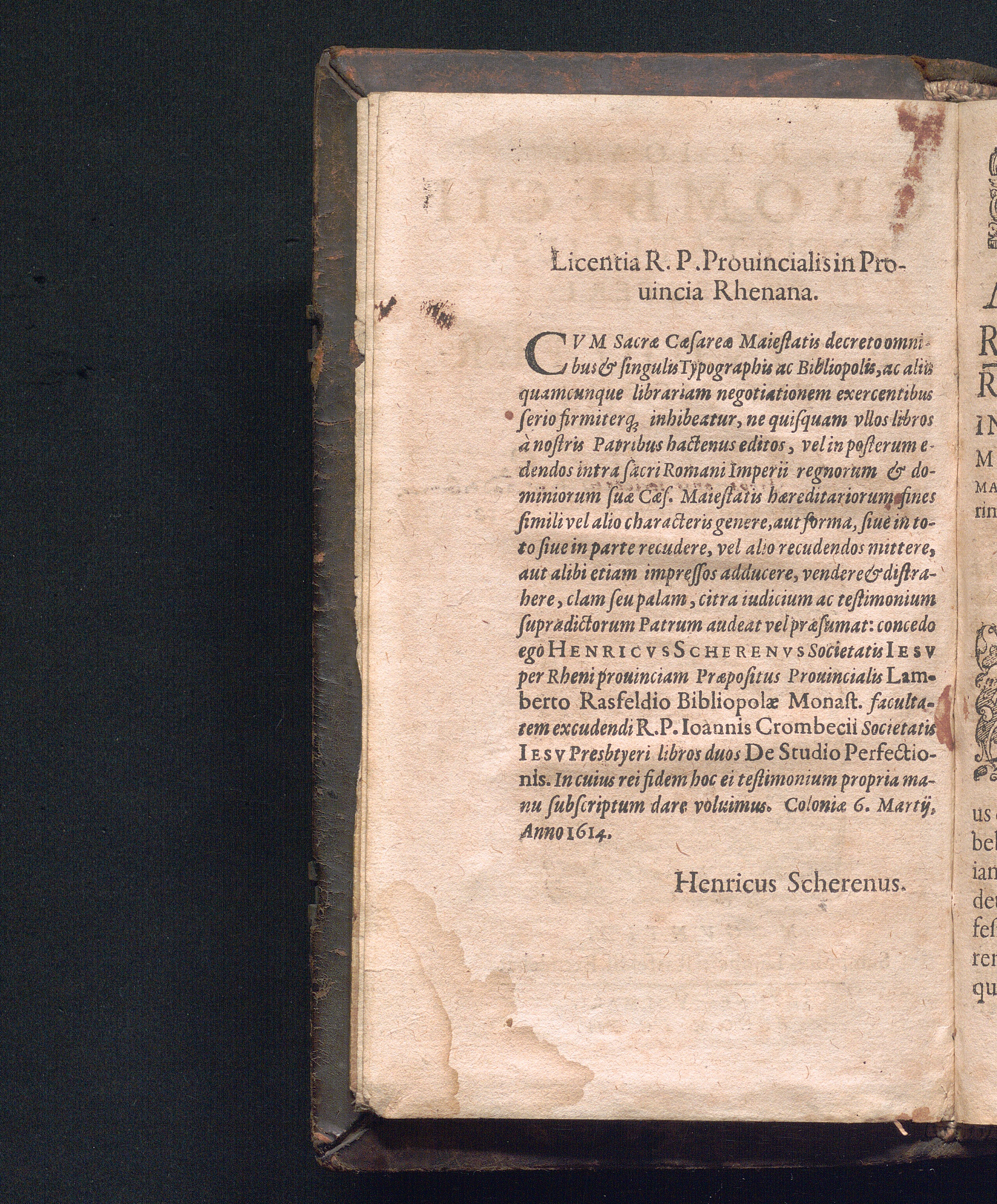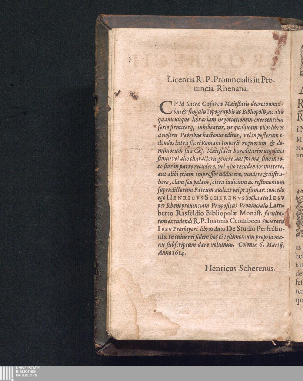 Licentia R. P. Prouincialis in Prouincia Rhenana.