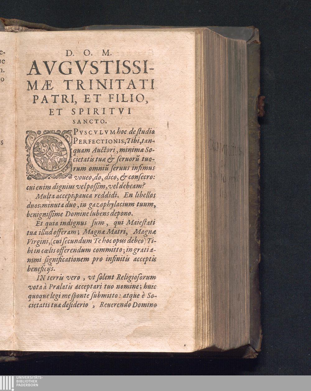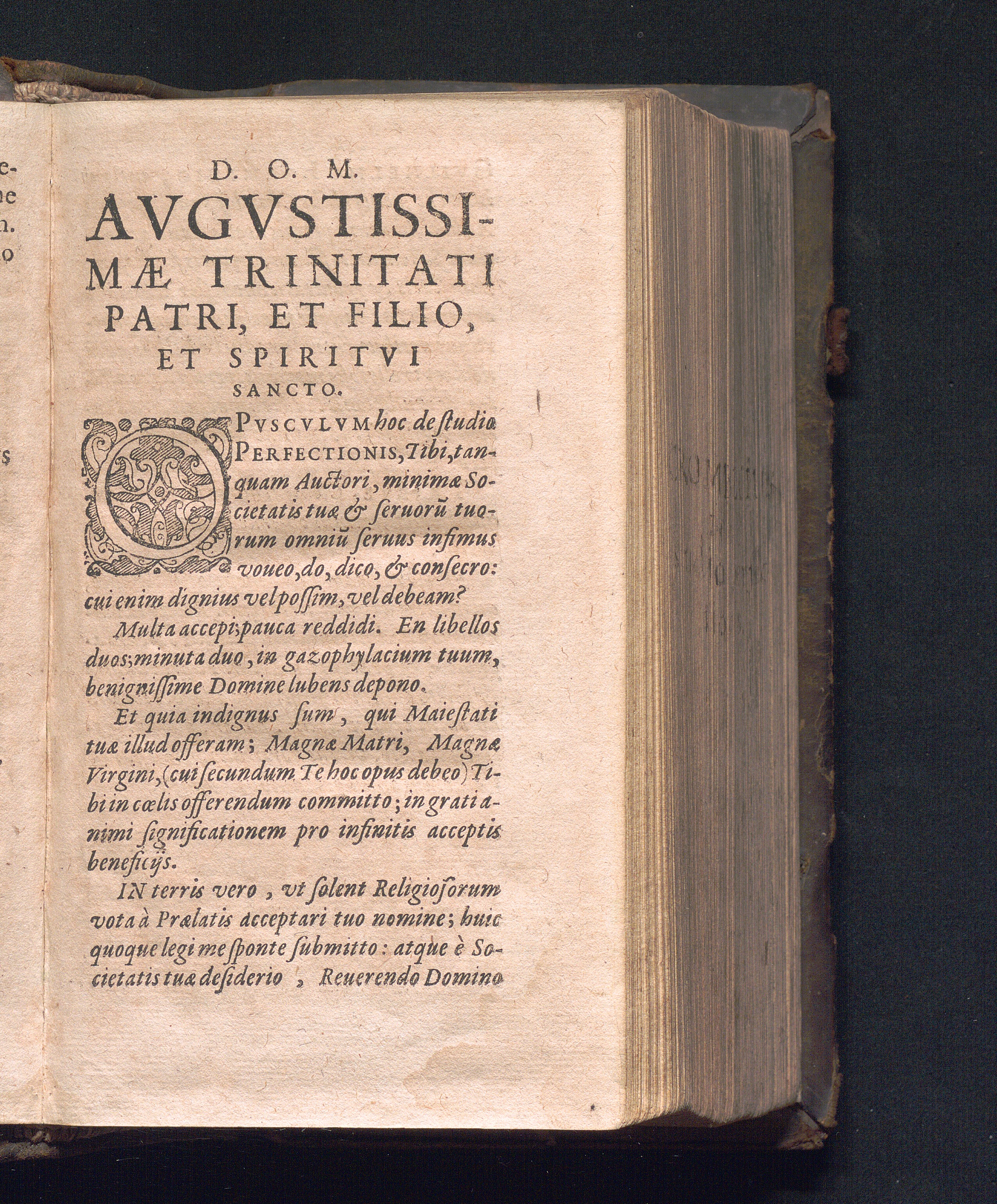 D. O. M. Avgvstissimæ Trinitati Patri, Et Filio, Et Spiritvi Sancto.