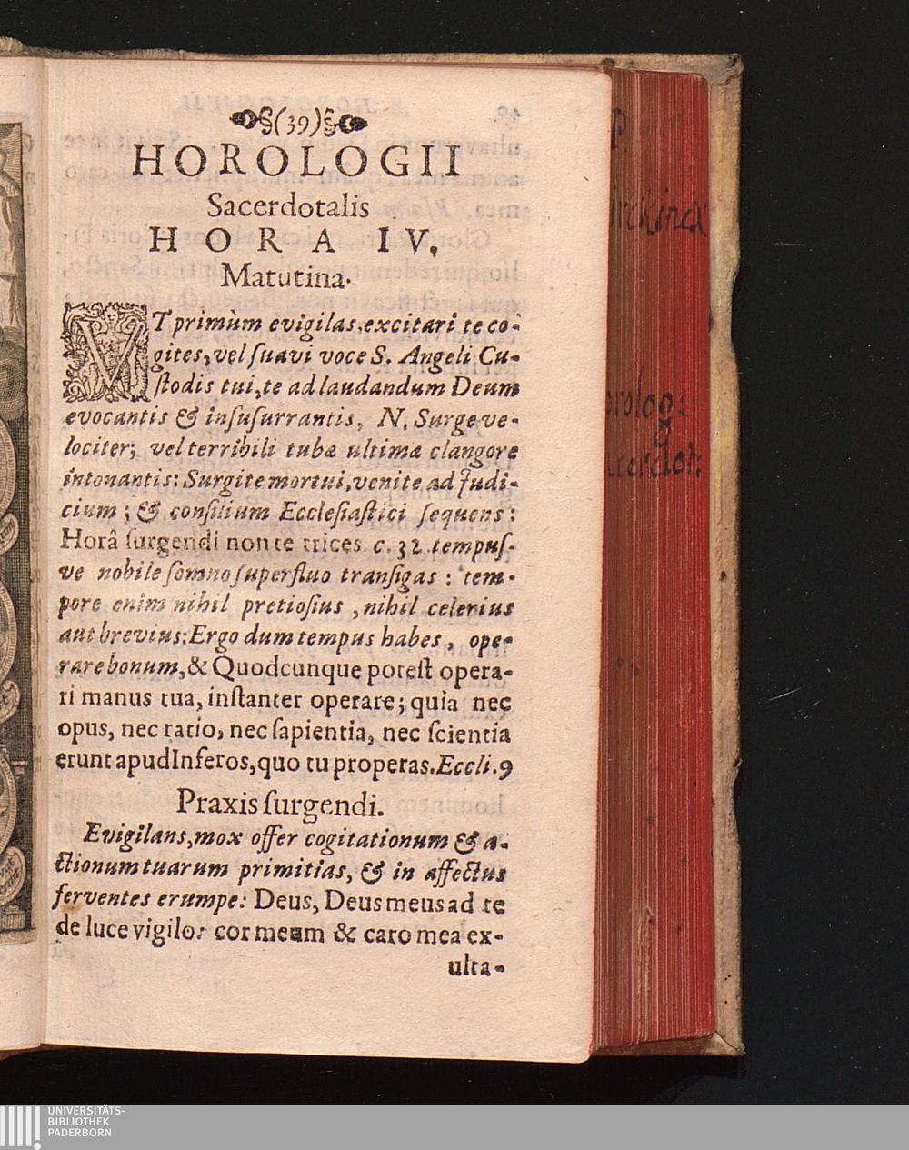 Horologivm Sacerdotale Sacerdotibus tam Ecclesiasticis, quàm Religiosis, præsertim Neomystis Ordinem diei, & praxes indicans Opera quotidiana exactè, sanctéque obeundi / Concinnatum à R. P. Joanne Dirckinck S. J.