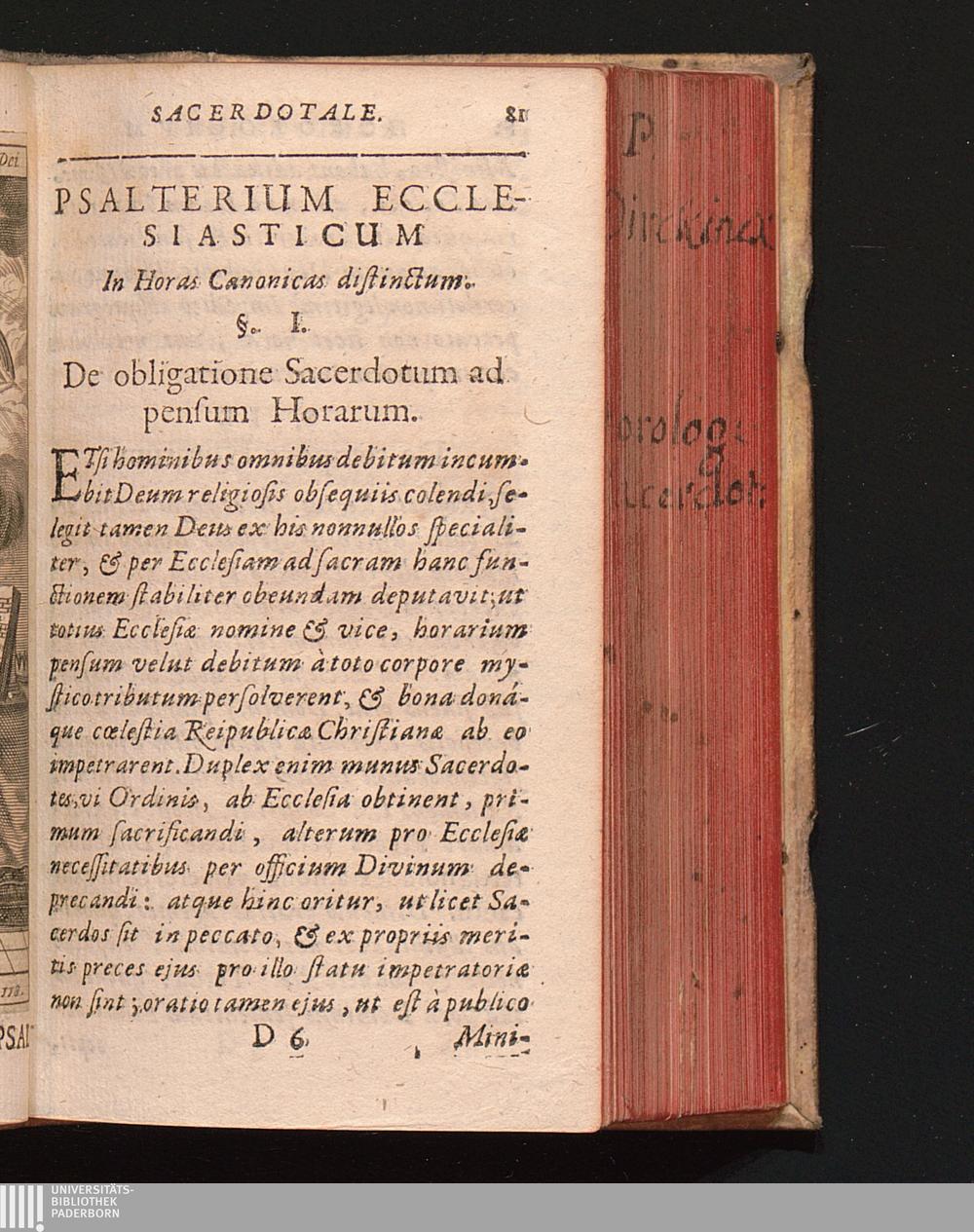 Horologivm Sacerdotale Sacerdotibus tam Ecclesiasticis, quàm Religiosis, præsertim Neomystis Ordinem diei, & praxes indicans Opera quotidiana exactè, sanctéque obeundi / Concinnatum à R. P. Joanne Dirckinck S. J.