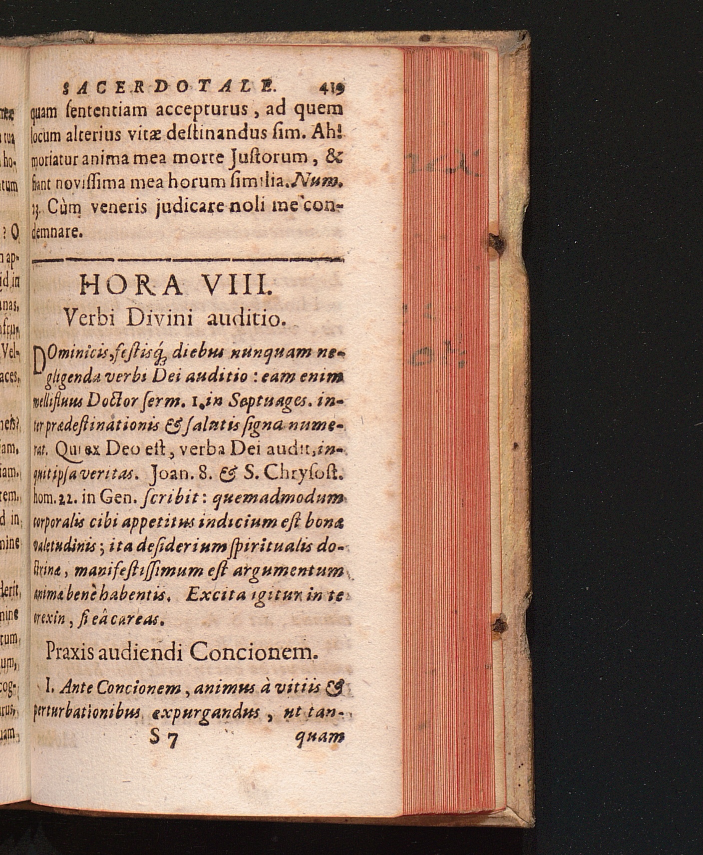 Horologivm Sacerdotale Sacerdotibus tam Ecclesiasticis, quàm Religiosis, præsertim Neomystis Ordinem diei, & praxes indicans Opera quotidiana exactè, sanctéque obeundi / Concinnatum à R. P. Joanne Dirckinck S. J.