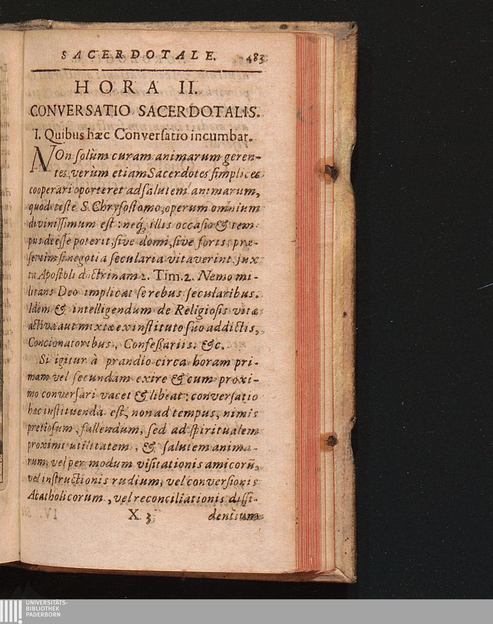 Horologivm Sacerdotale Sacerdotibus tam Ecclesiasticis, quàm Religiosis, præsertim Neomystis Ordinem diei, & praxes indicans Opera quotidiana exactè, sanctéque obeundi / Concinnatum à R. P. Joanne Dirckinck S. J.