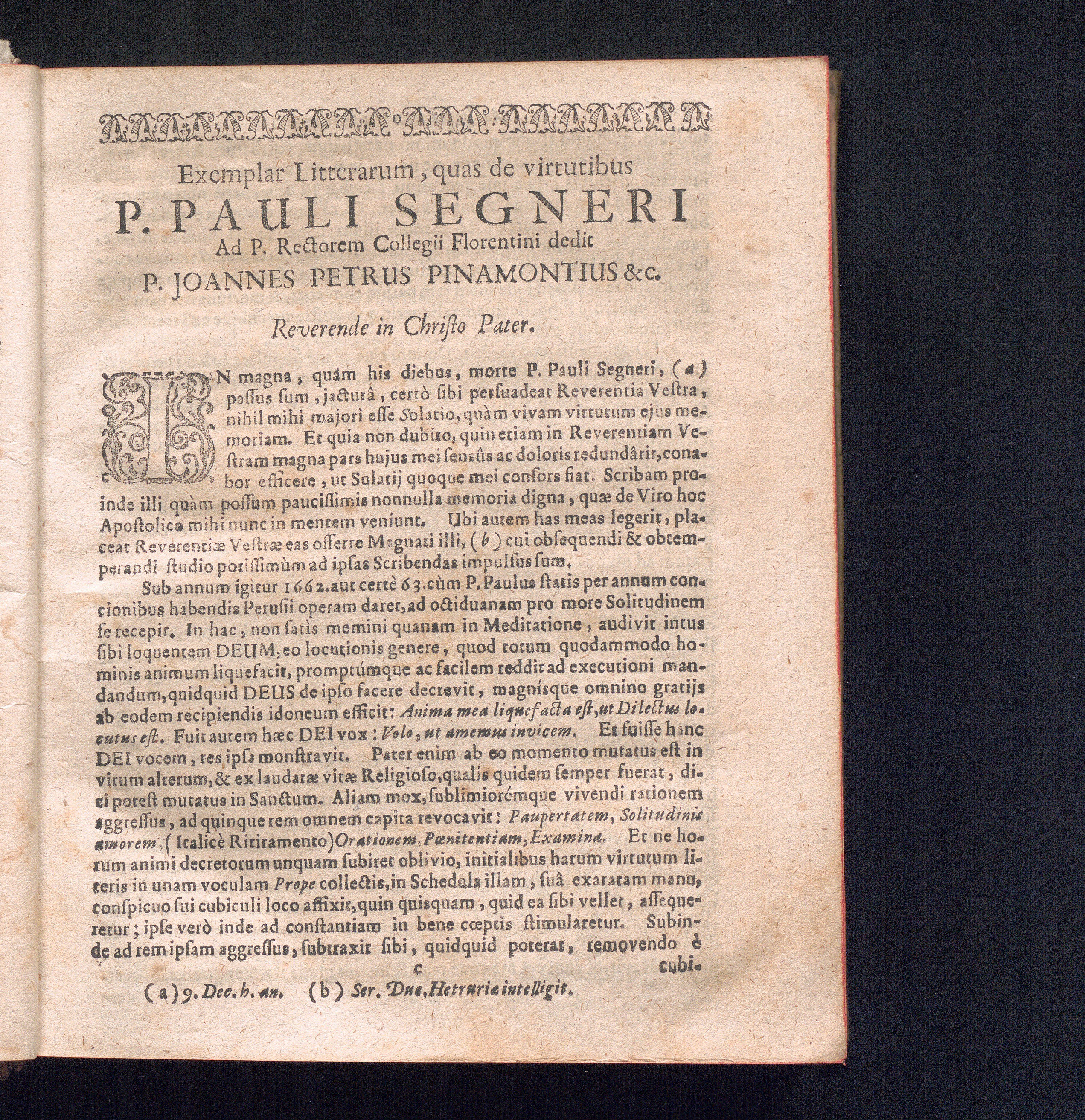 Exemplar Litterarum, quas de virtutibus P. Pauli Segneri Ad P. Rectorem Collegii[...]