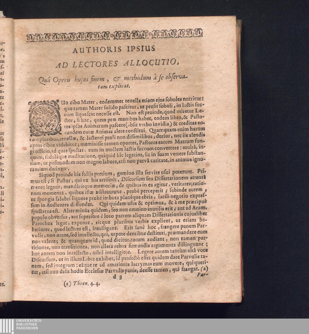 Authoris Ipsius Ad Lectores Allocutio, Quá Operis hujus finem, & methodum à se observatam[...]