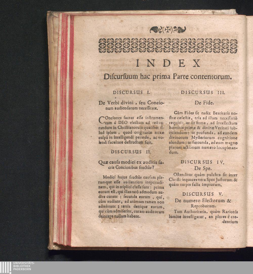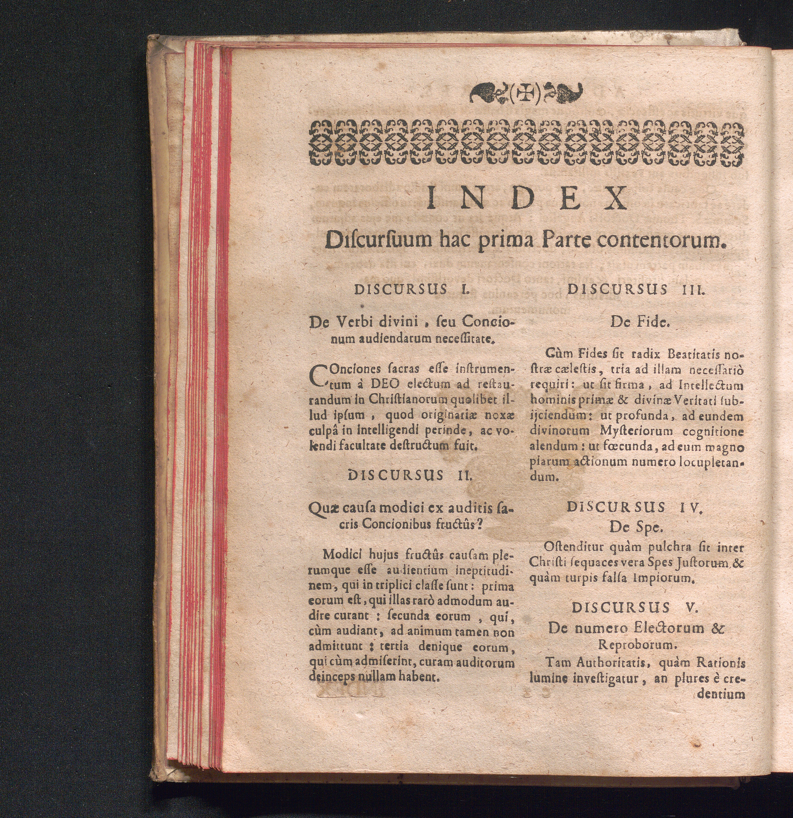 Index Discursuum hac prima Parte contentorum.