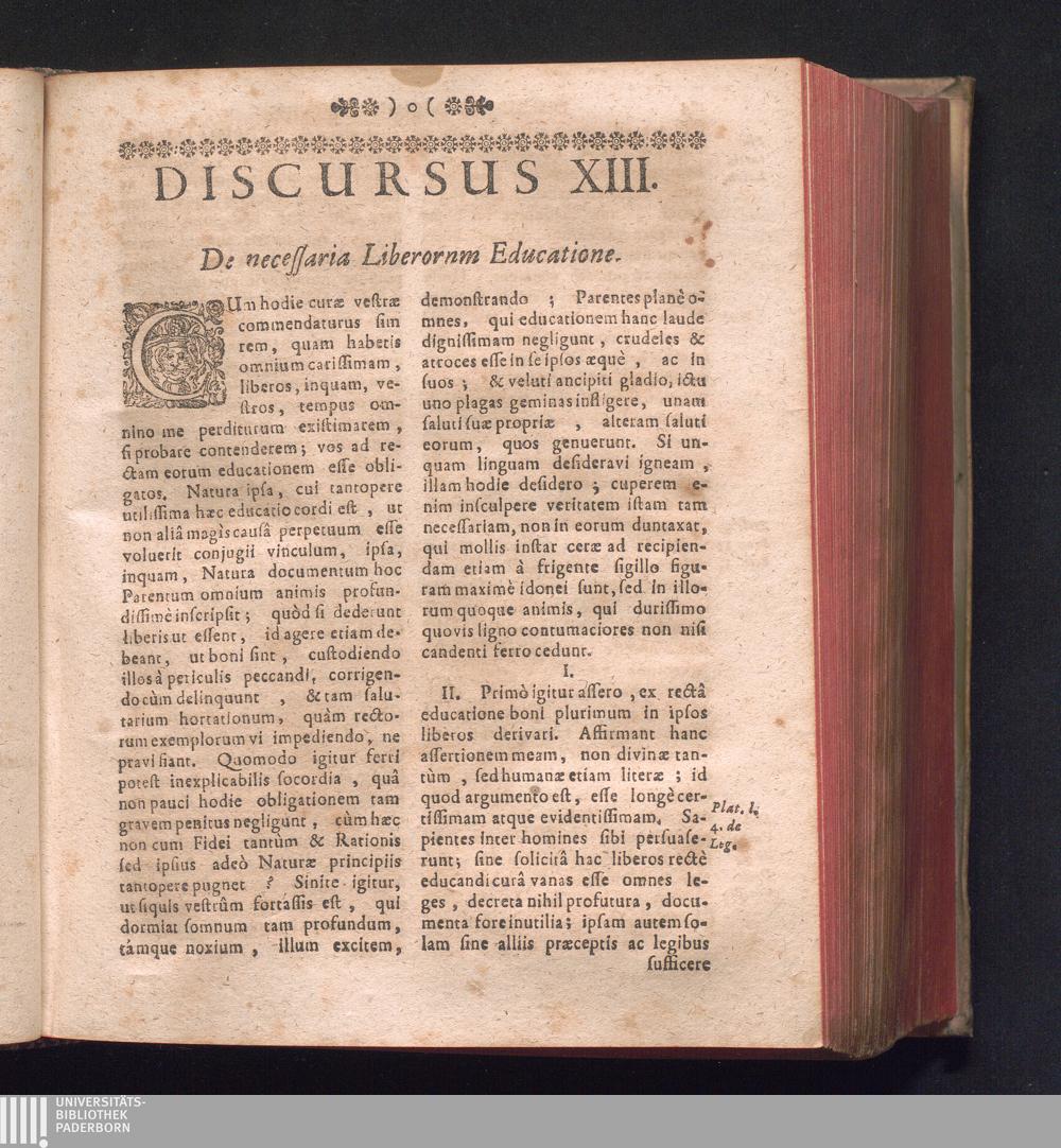 Discursus XIII. De recta Liberorum educatione. Crudelem in se, & in suos esse, quisquis[...]