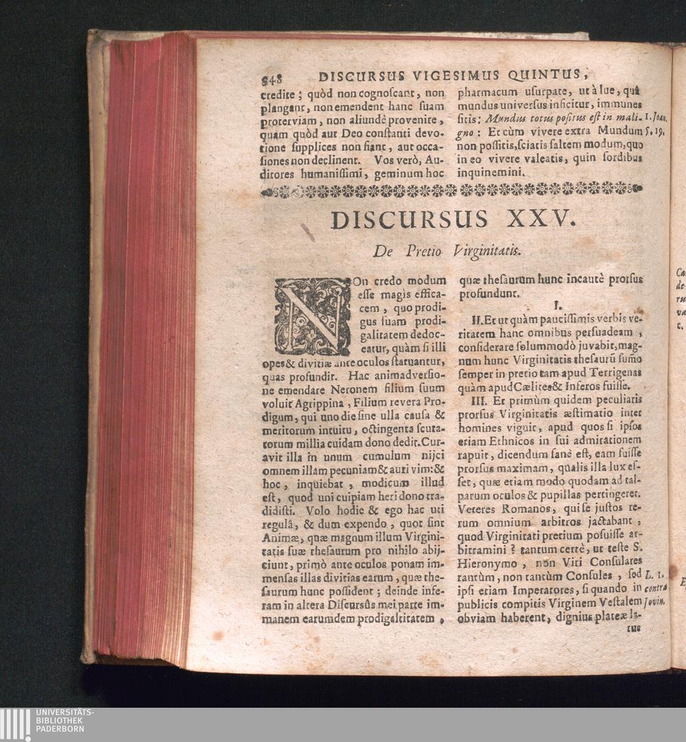 Discursus XXV. De Excellentia Virginitatis. Parte prima ob oculos ponuntur maximæ[...]