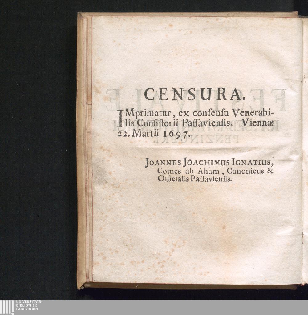 R. P. Sebastiani Henrici Penzingeri, Consistorialis Passaviensis, Decani, & Parochi in Trauttmanstorff ad Laitam Bonus Ordo Triplicis Formatæ Concionis Moralis In Omnia Festa Sanctorum In Amplissima Diœcesi Passaviensi celebria per totum Annum : In Exordio Thema assumptum, SS. Patrum nervosis verbis, ac Dictis, ut inconcussis Veritatis columnis fulcitur; In Confirmatione Conceptus elegantissimi adferuntur; Epilogus, aut Sacræ Scripturæ, aut alicujus S. Patris sententiâ concluditur. In Fine accessêre Encomia B. Mariæ Virginis Discursibus quadraginta quatuor constantia : In bonum usum eorum vel maximè, qui copiâ librorum carent, vel multa legendi otium non habent. Cum Indice locupletissimo Thematum rerumque memorabilium