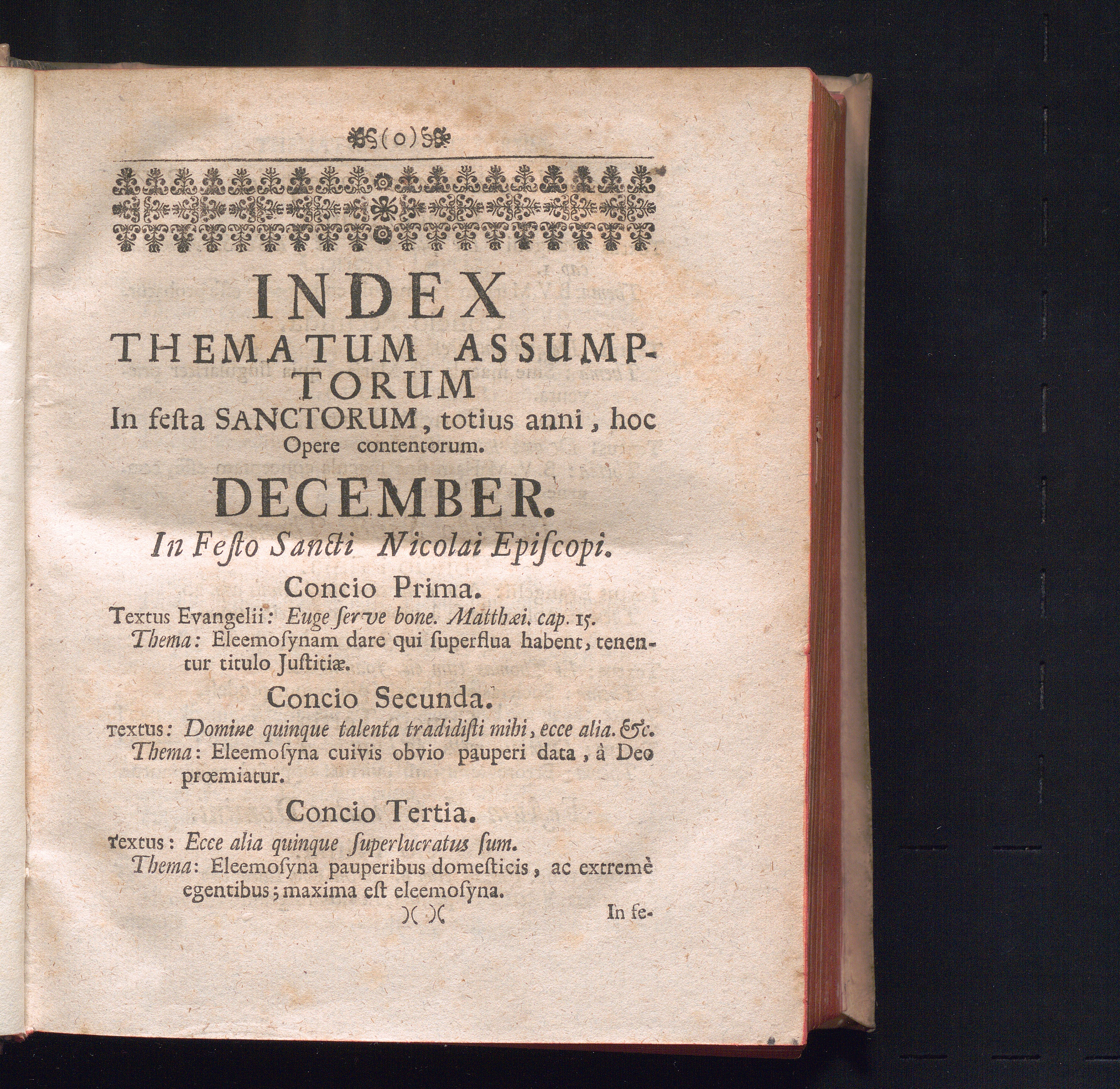 R. P. Sebastiani Henrici Penzingeri, Consistorialis Passaviensis, Decani, & Parochi in Trauttmanstorff ad Laitam Bonus Ordo Triplicis Formatæ Concionis Moralis In Omnia Festa Sanctorum In Amplissima Diœcesi Passaviensi celebria per totum Annum : In Exordio Thema assumptum, SS. Patrum nervosis verbis, ac Dictis, ut inconcussis Veritatis columnis fulcitur; In Confirmatione Conceptus elegantissimi adferuntur; Epilogus, aut Sacræ Scripturæ, aut alicujus S. Patris sententiâ concluditur. In Fine accessêre Encomia B. Mariæ Virginis Discursibus quadraginta quatuor constantia : In bonum usum eorum vel maximè, qui copiâ librorum carent, vel multa legendi otium non habent. Cum Indice locupletissimo Thematum rerumque memorabilium