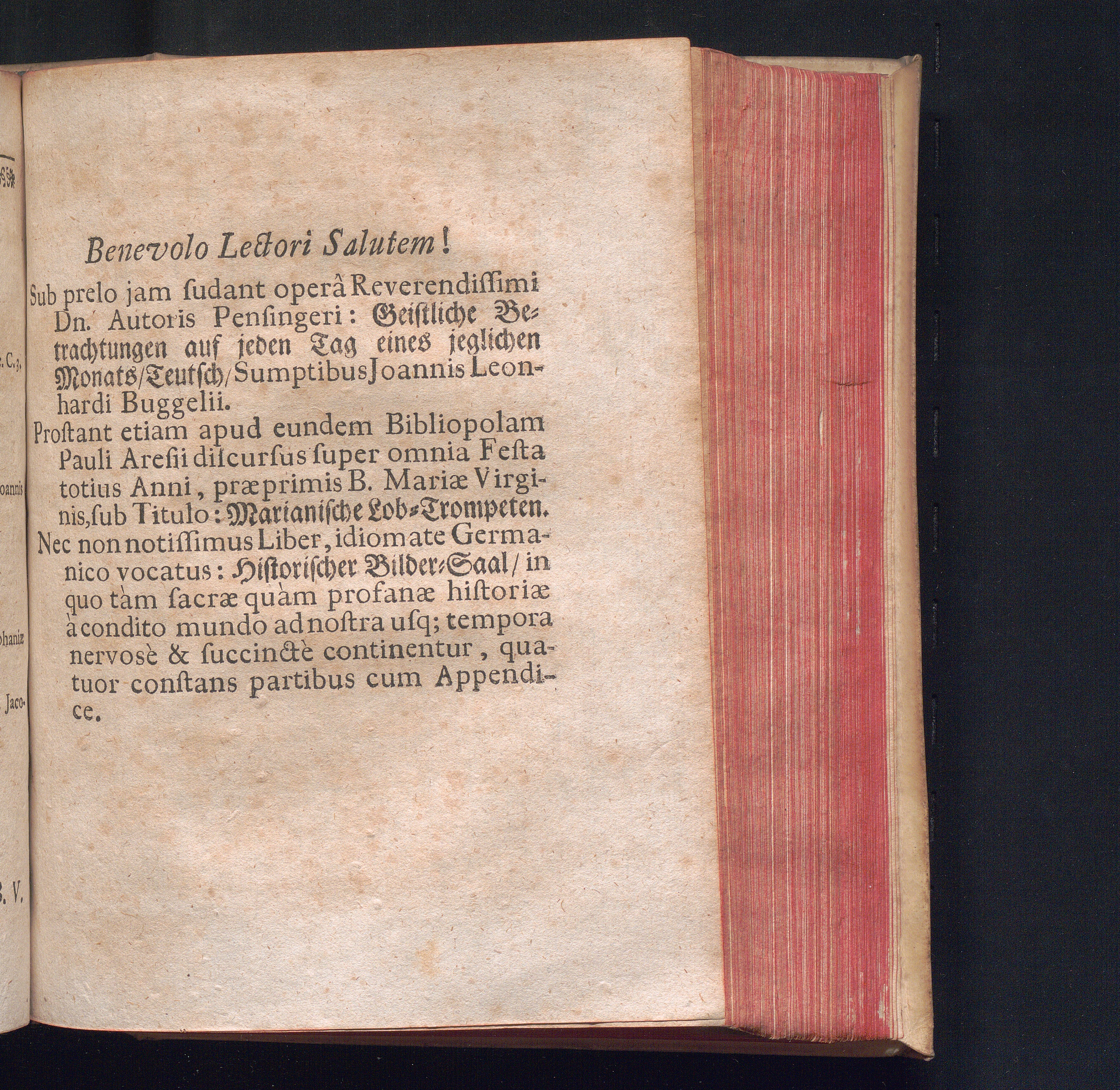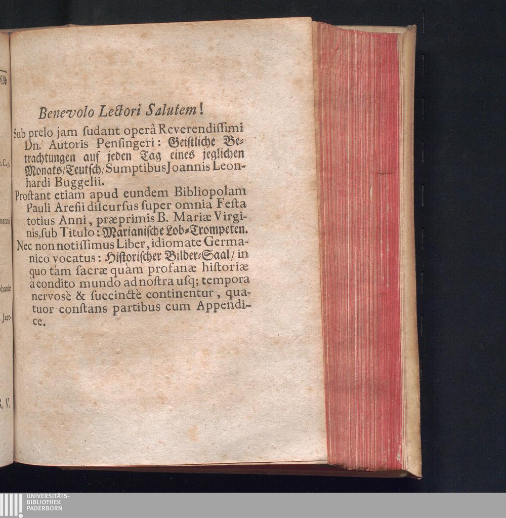 R. P. Sebastiani Henrici Penzingeri, Consistorialis Passaviensis, Decani, & Parochi in Trauttmanstorff ad Laitam Bonus Ordo Triplicis Formatæ Concionis Moralis In Omnia Festa Sanctorum In Amplissima Diœcesi Passaviensi celebria per totum Annum : In Exordio Thema assumptum, SS. Patrum nervosis verbis, ac Dictis, ut inconcussis Veritatis columnis fulcitur; In Confirmatione Conceptus elegantissimi adferuntur; Epilogus, aut Sacræ Scripturæ, aut alicujus S. Patris sententiâ concluditur. In Fine accessêre Encomia B. Mariæ Virginis Discursibus quadraginta quatuor constantia : In bonum usum eorum vel maximè, qui copiâ librorum carent, vel multa legendi otium non habent. Cum Indice locupletissimo Thematum rerumque memorabilium