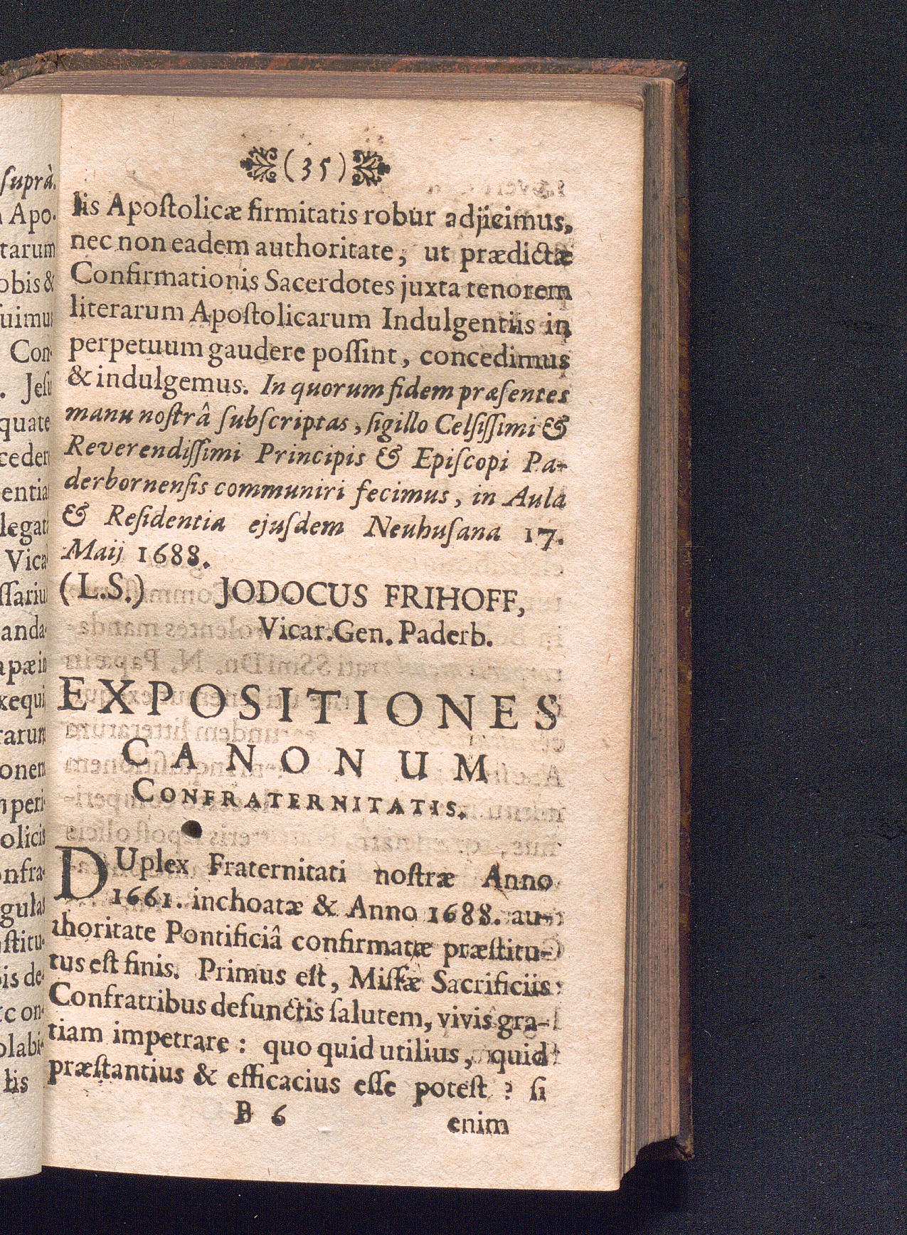 Canones Directivi Confraternitatis Sacerdotum Bonae Voluntatis, Sub Invocatione Domini Nostri Jesu Christi in Cruce morientis : Eorundémque Expositiones Annis Praecedentibus Successivè In Strenam Datae: Nunc verò In unum Libellum Conjunctae, Et Xenii loco Confraternitati oblatae / [Joannes Dirckinck Soc. Jesu]