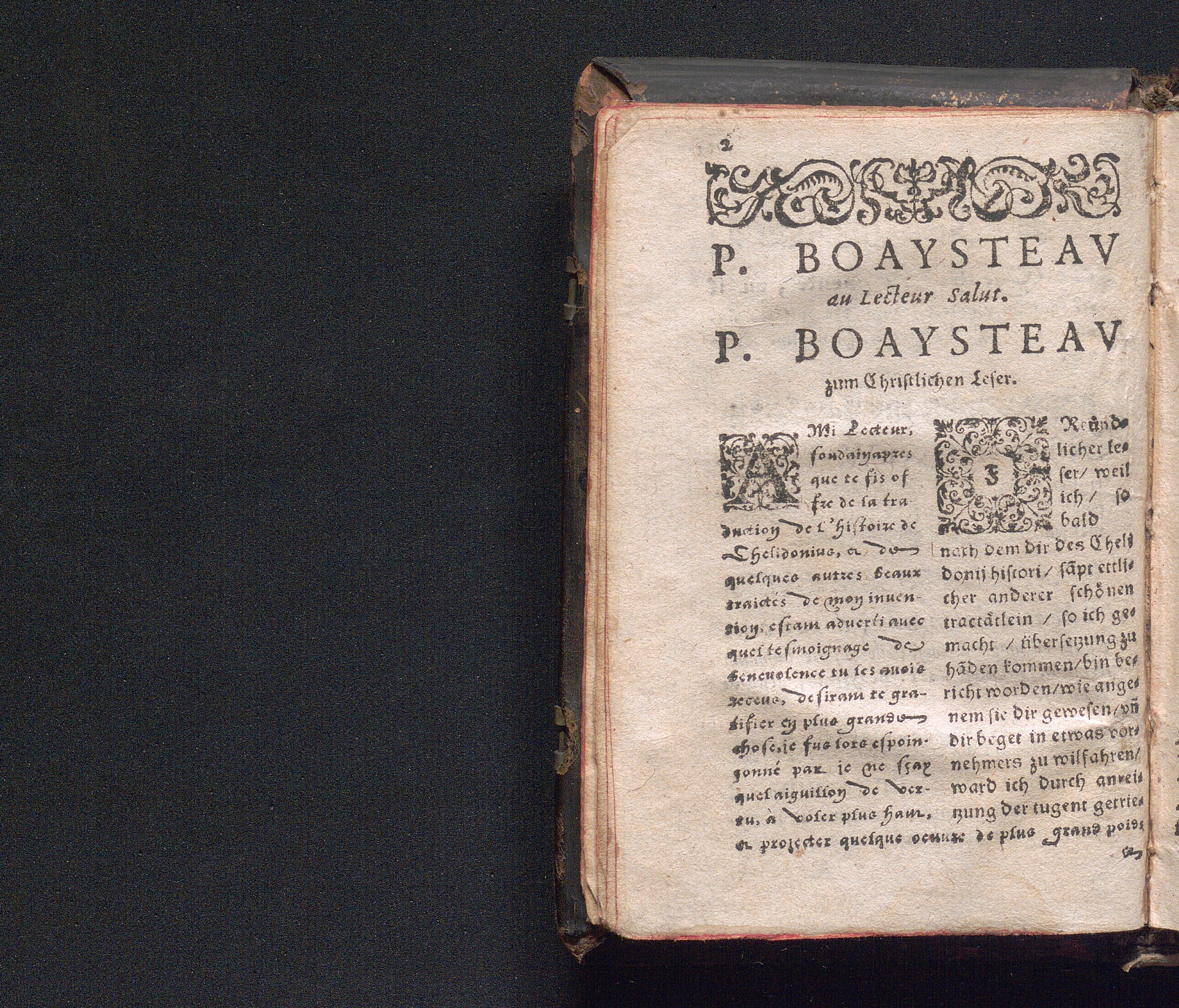Le Theatre Dv Monde, Representant Par Vn ample discours les miseres humaines / Composé en Latin par P. Boisteau surnomme Launay natif de Bretaigne: & traduit par luy mesme en François, puis en Allemand par Laurentius Rotmundus de Sangal, & nouvellement en Italien par Jean de Tournes