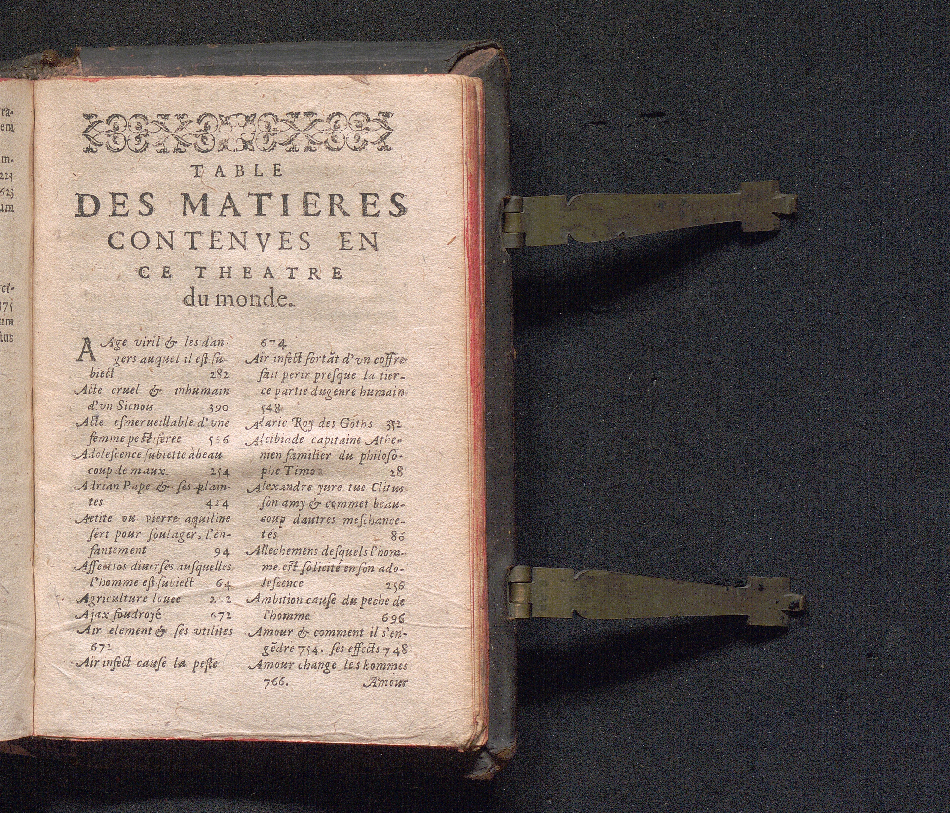 Le Theatre Dv Monde, Representant Par Vn ample discours les miseres humaines / Composé en Latin par P. Boisteau surnomme Launay natif de Bretaigne: & traduit par luy mesme en François, puis en Allemand par Laurentius Rotmundus de Sangal, & nouvellement en Italien par Jean de Tournes