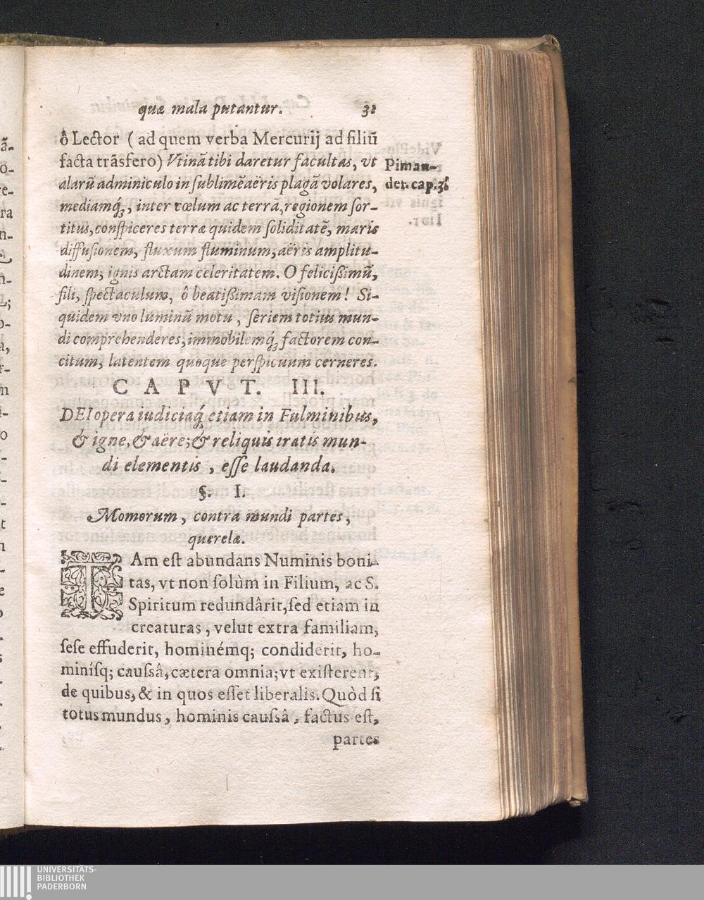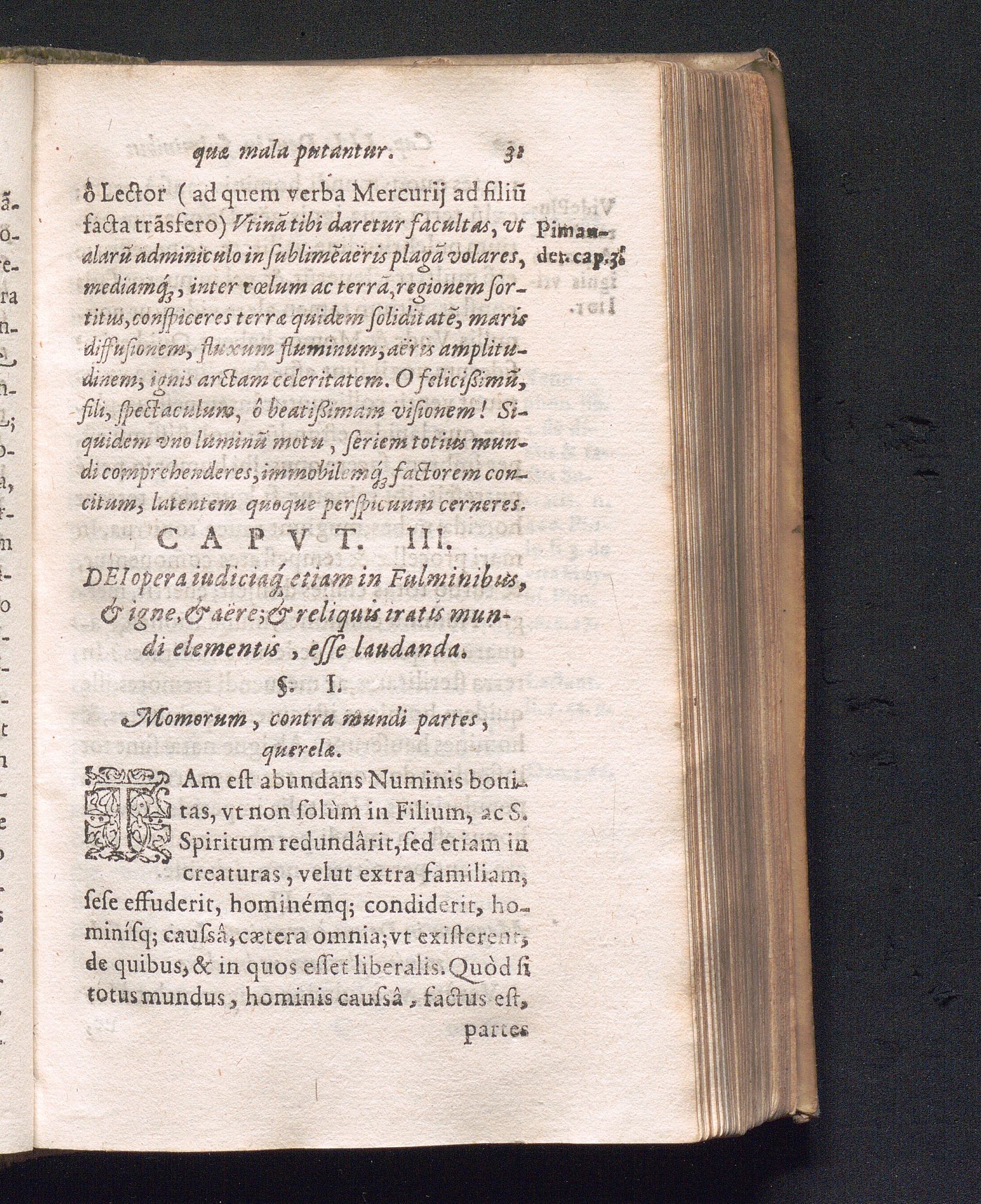 Capvt III. Dei opera judiciaq[ue] etiam in fulminibus, & igne, & aëre, & reliquis[...]