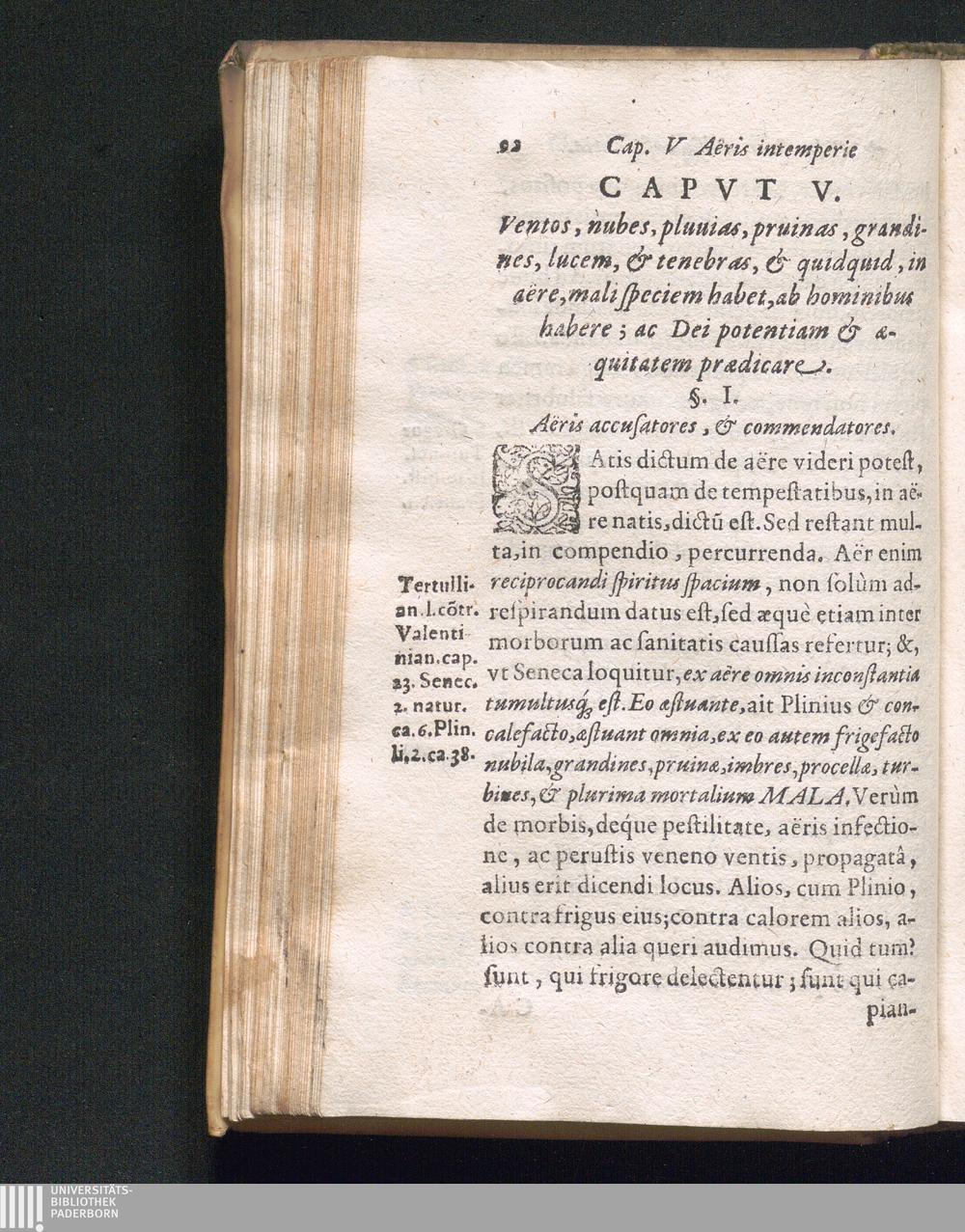 Capvt V. Ventos, nubes, pluuis, grandines, lucem, & tenebras, & quidquid in aëre[...]