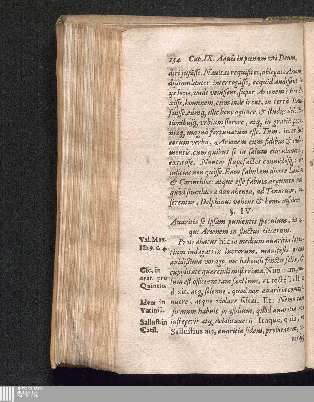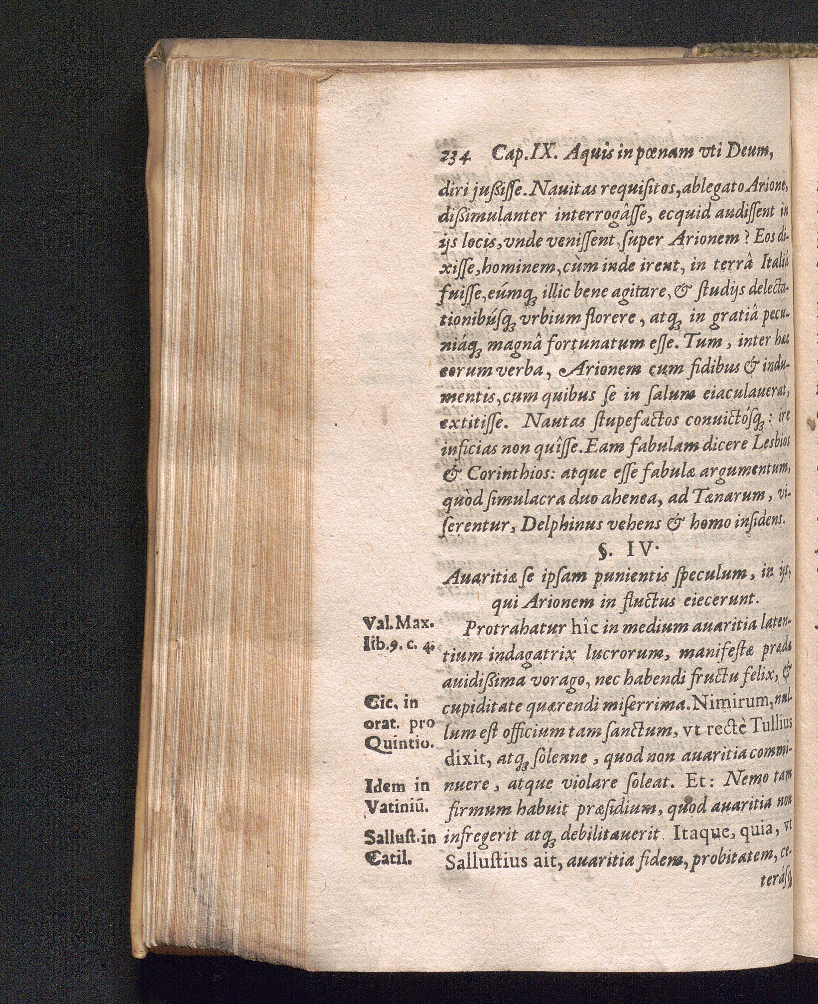 §. 4. Auaritiæ seipsam punientis speculum, in ijs, qui Arionem in fluctus eiecer[...]