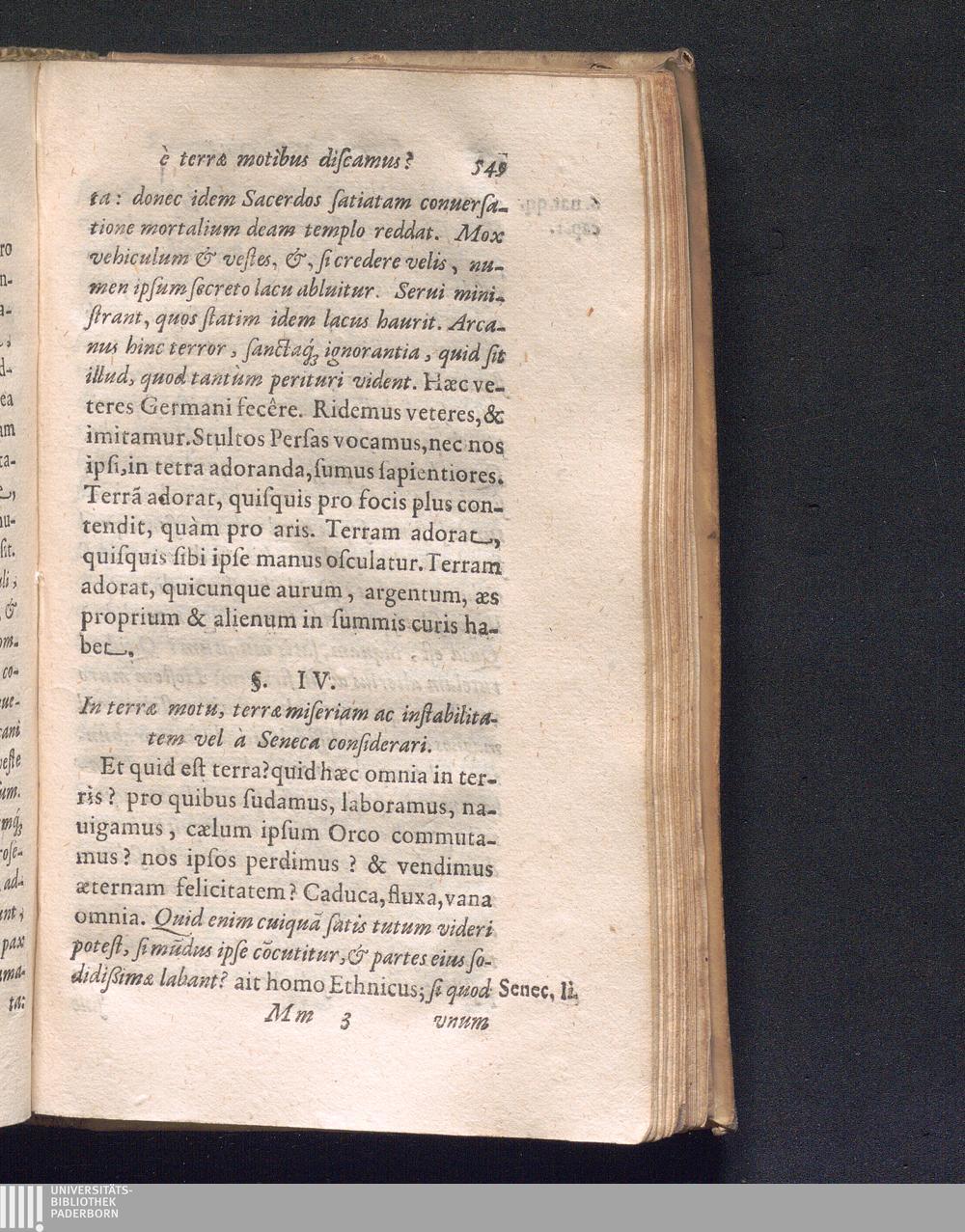 §. 4. In terræ motu, terræ miseriam ac instabilitatem vel à Seneca considerari.