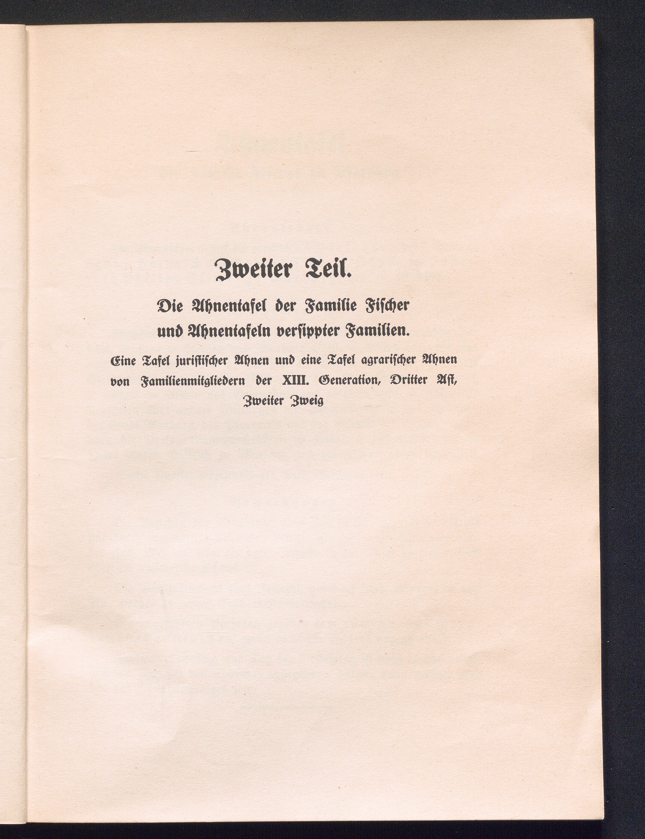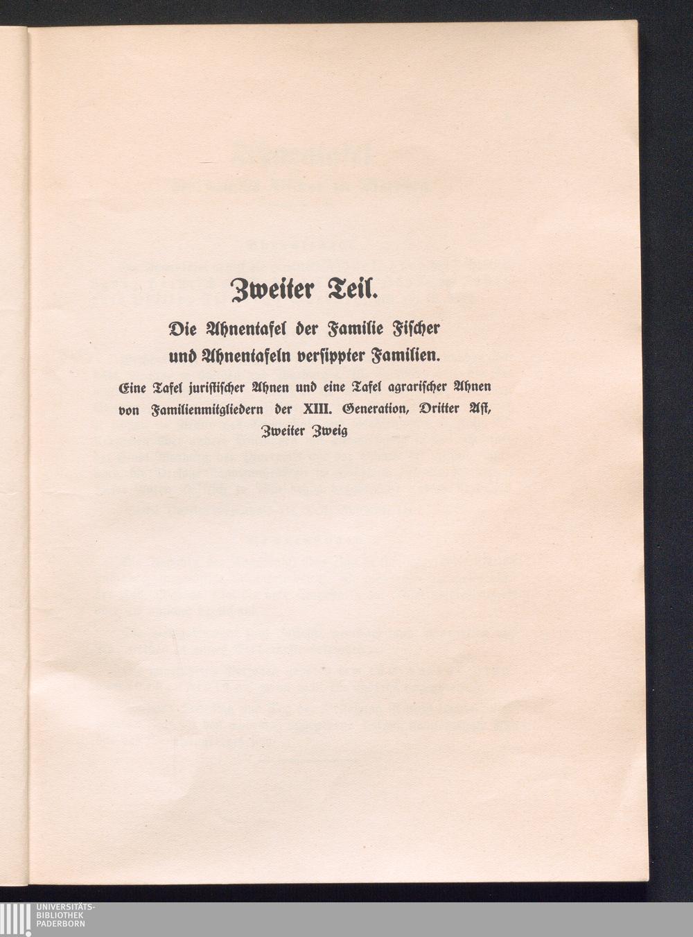 Zweiter Teil. Die Ahnentafel der Familie Fischer und Ahnentafeln versippter Familien.[...]