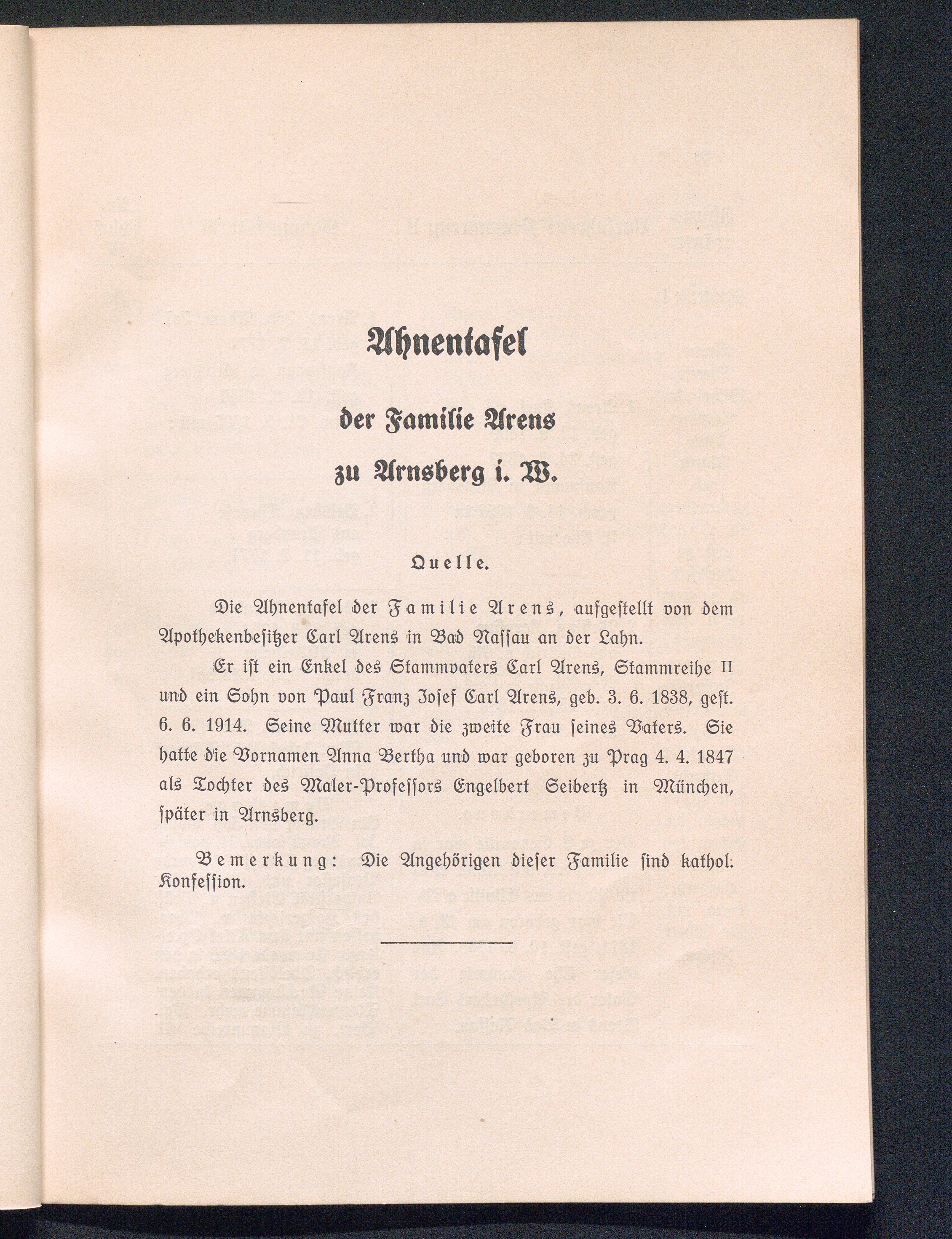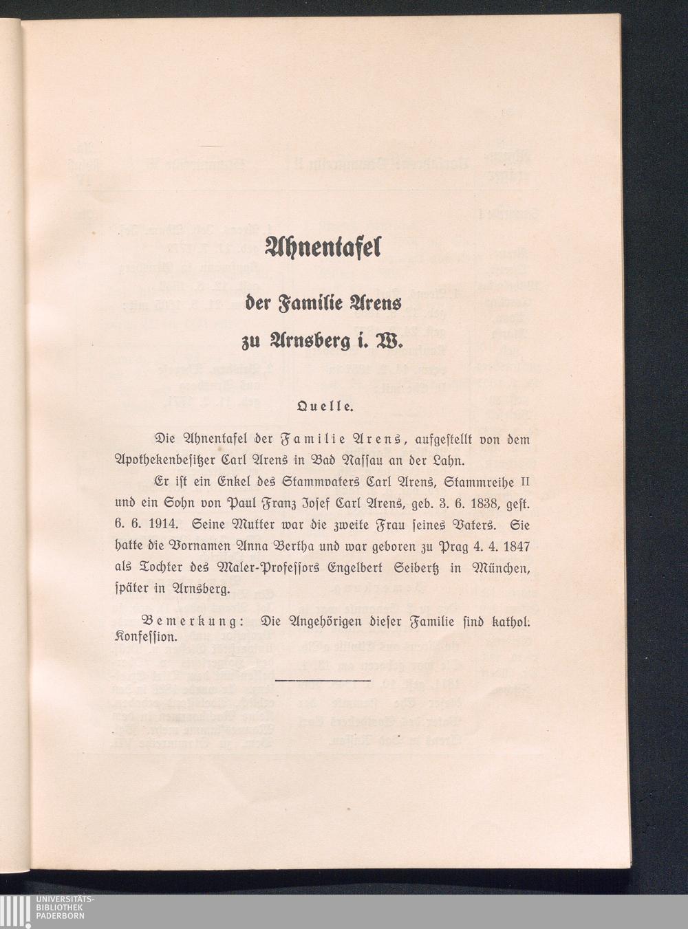 Ahnentafel der Familie Arens zu Arnsberg i.W.