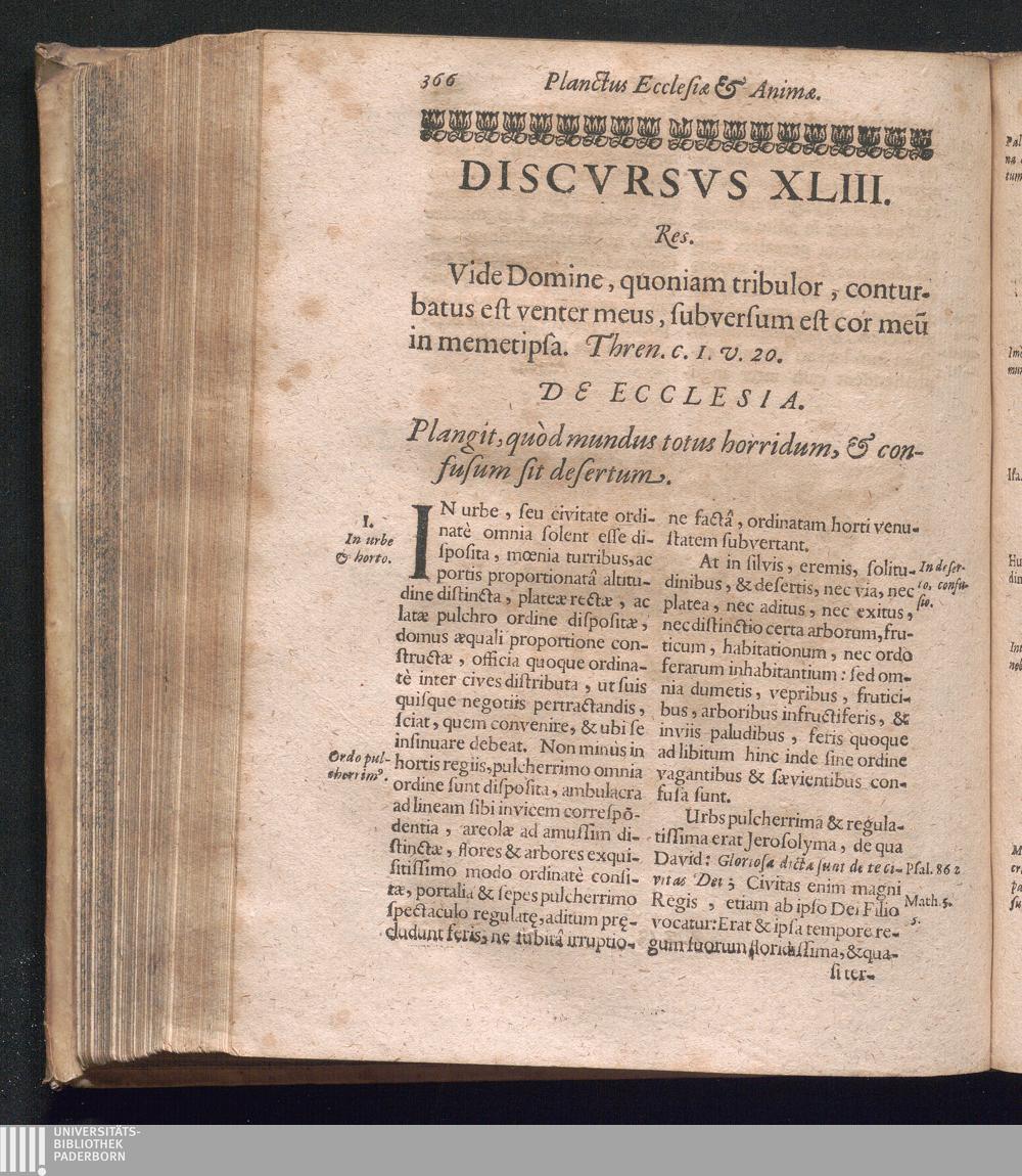 IV. (1680) Planctvs Ecclesiæ Et Animæ : Super Caput Primum Lamentationum Jeremiæ Prophetæ. Allegorice, Et Moraliter Expositus, & Distributus In Discursus LII. Concionatorios Quadragesimales ... ; Scilicet Liber Vitæ, Et Excessvs Amoris ... / Per P. F. Franciscum Josephum Ex Busmanshausen Ord: FFr: Min: S. Francisci Capuccinorum Provinciæ Anterioris Austriæ