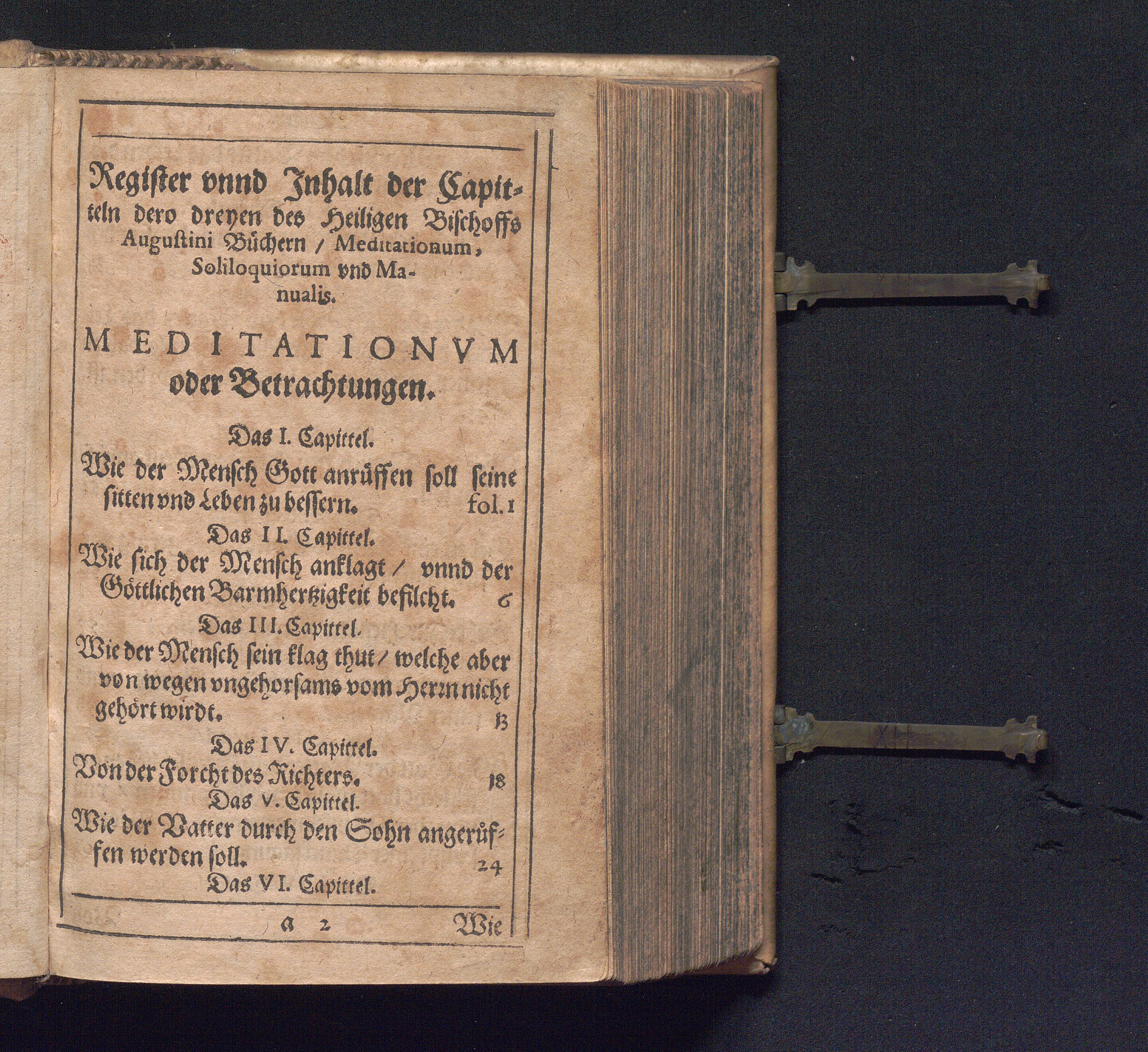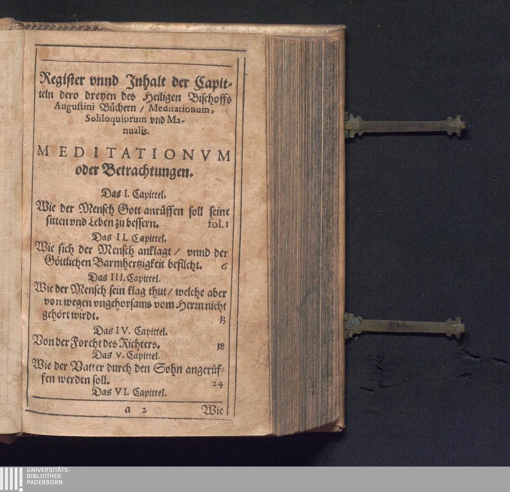Drey Bucher des H. Augustini/ Meditationes, Soliloqvia vnd Manvale zu Latein genennt : Darinnen Christliche Catholische vnnd Andechtige Gebett vnnd Gottselige Betrachtungen begriffen / zu mehrung Geistlicher Andacht trewlich verteutscht/ durch den Würdigen Herrn Iohannem Schwayger/ vnser Lieben Frawen zu Franckfurt am Mayn Scholastern