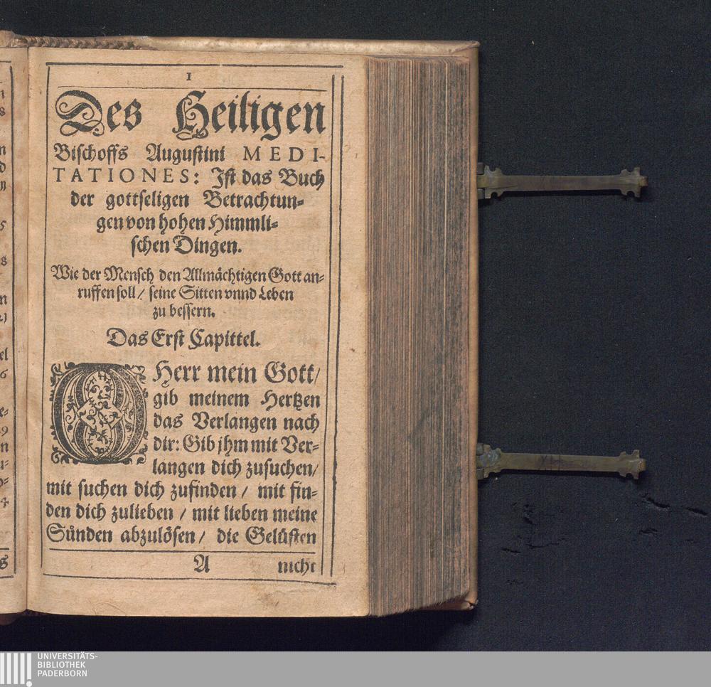 Drey Bucher des H. Augustini/ Meditationes, Soliloqvia vnd Manvale zu Latein genennt : Darinnen Christliche Catholische vnnd Andechtige Gebett vnnd Gottselige Betrachtungen begriffen / zu mehrung Geistlicher Andacht trewlich verteutscht/ durch den Würdigen Herrn Iohannem Schwayger/ vnser Lieben Frawen zu Franckfurt am Mayn Scholastern