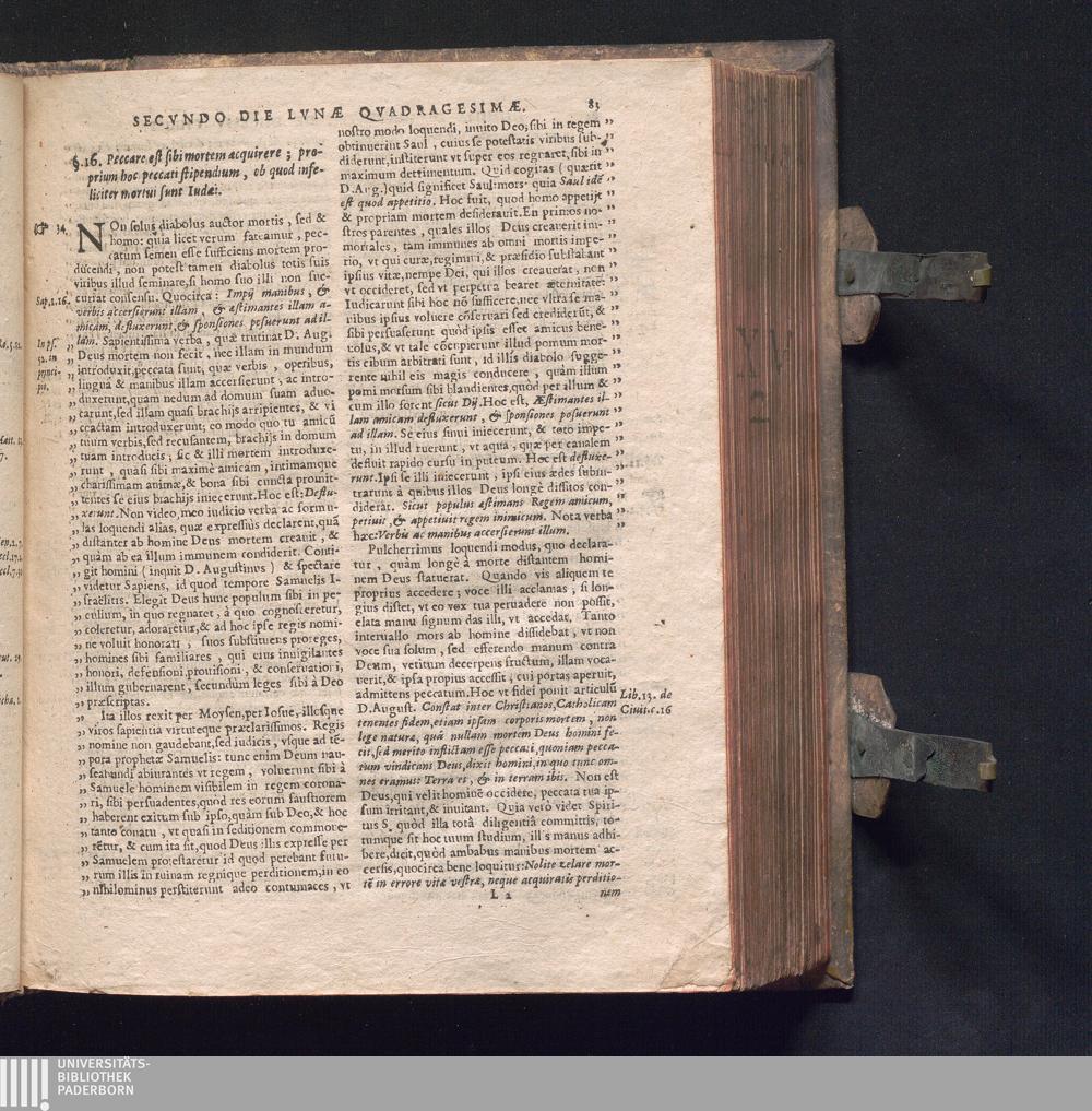 §. 16. Peccare est sibi mortem acquirere; proprium hoc peccati stipendium, ob quod[...]
