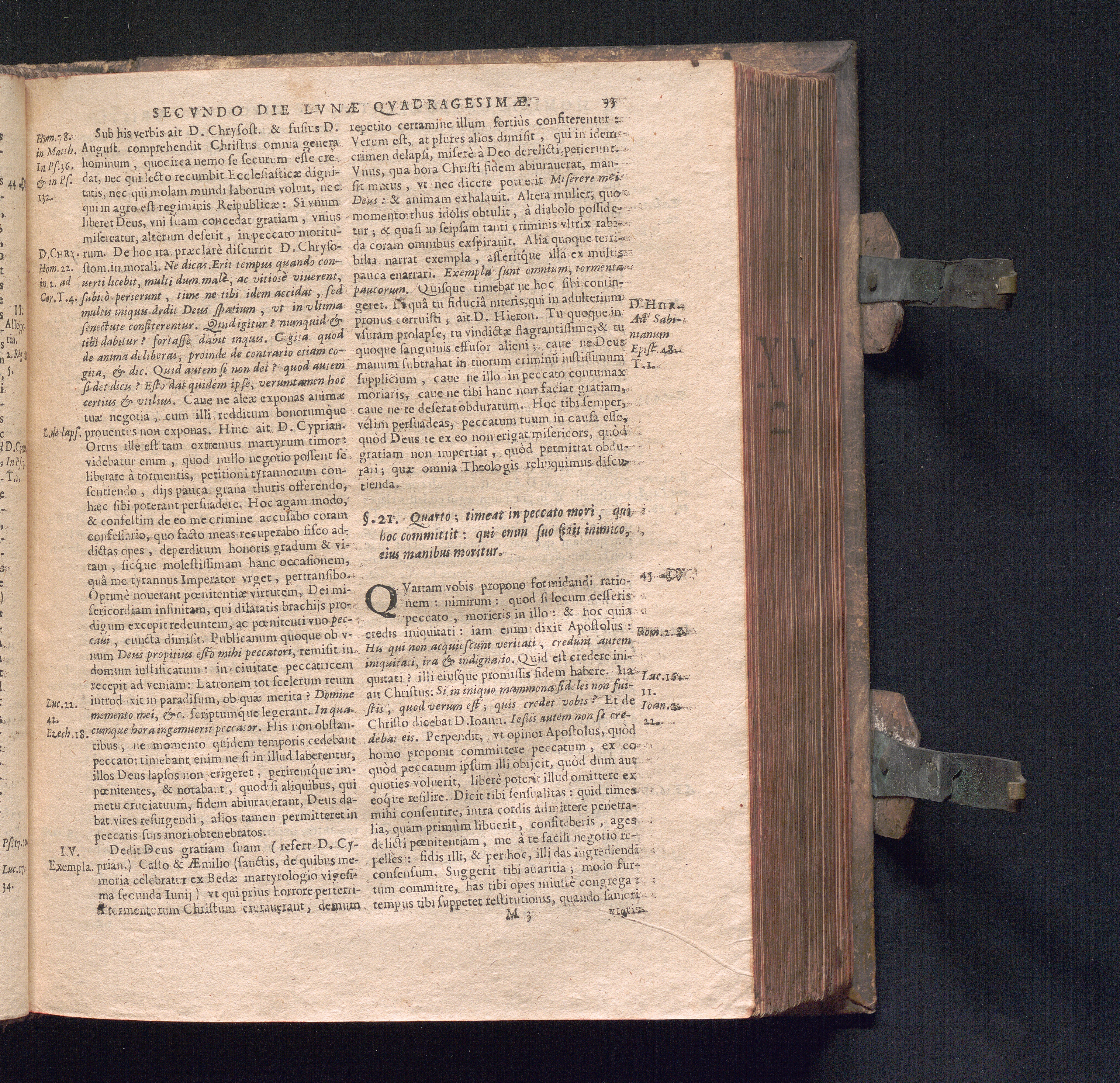 §. 21. Quarto: timeat in peccato mori, qui hoc committit: qui enim suo fidit inimico,[...]