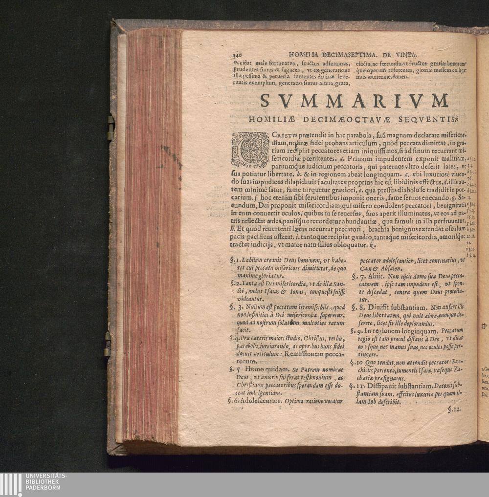 Svmmarivm Homiliæ Decimæoctavæ Seqventis.
