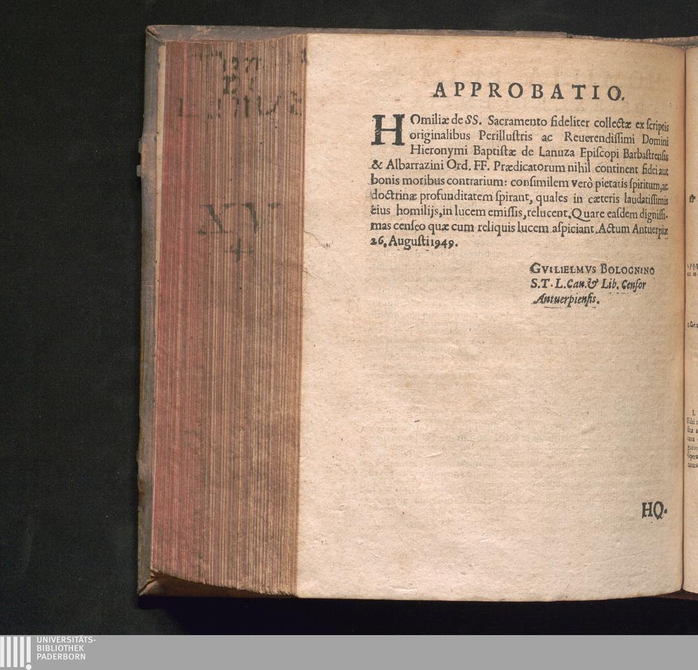Homiliæ Adm. Illvstris Ac R.dissimi Domini D. Fr. Hieronymi Baptistæ De Lanvza Venerabilis memoriæ Episcopi Barbastrensis & Albarrazini Ord. FF. Prædicatorum : Svper Evangelivum Qvod Legitvr In Solemnitate SS. Sacramenti Altaris. His accessit expositio Missæ in vltima Homilia: conueniens valde Missarum primtijs, earumque celebrationi vtque illas fideles cum deuotione & vera sublimium mysteriorum cognitione audiant / Illas collegit ex eiusdem Auctoris scriptis Originalibus fideliter & diligenter Fr. Ioannes Lavrentivs Cayrosa S. Theologiæ Lector celebris Conuentus & Vniuersitatis FF. Prædicatorum Cæsar-angustæ. In latinum translatæ per R.P.F. Onesimvm De Kien Iprensem Ordinis FF. Minorum Capucinorum Concionatorem Prouinciæ Flandro-Belgicæ