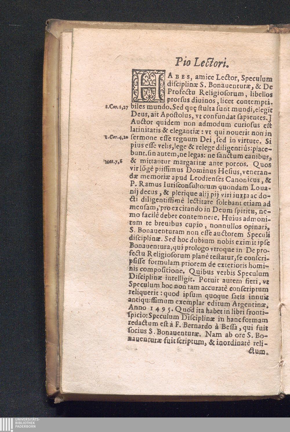 Sancti Bonaventvræ Episcopi Cardinalis Albanensis, Seraph. Doctoris Ecclesiæ, Speculum Disciplinæ, Et Profectus Religiosorum: Libelli ad pietatem vtilissimi / Operâ F. Henrici Sedvlii Cliuiensis, Instituti D. Francisci de Obseruantia Guardiani Antvverp. diligenter emendati